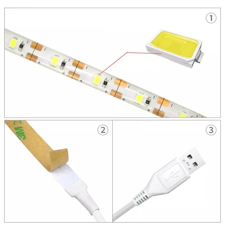①High качества 2835SMD светодиодный② Двусторонний клей ③ интерфейс питания USB