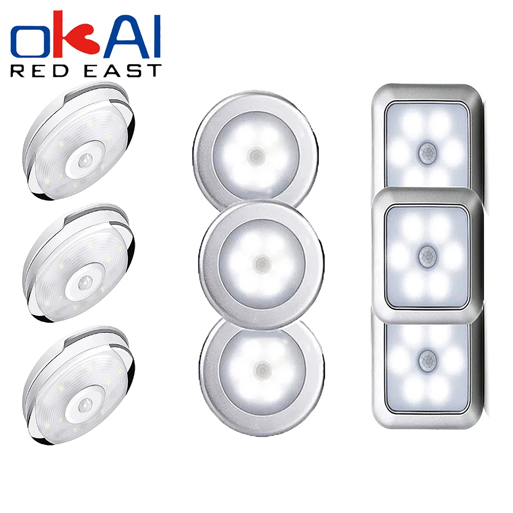 Движения Сенсор ночной Светильник Беспроводной круглый светодиодный светильник шкафа лестницы, лампы с магнитом и безопасный прихожей Ванная комната Спальня Кухня шкаф светильник s