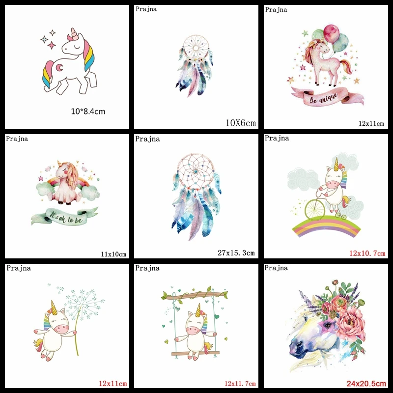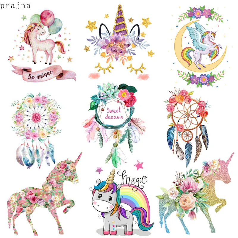 Наклейки в виде цветов Ловец снов Prajna, тепловые Термотрансферы для одежды, аппликация в виде мультяшного единорога, переводы утюга для одежды