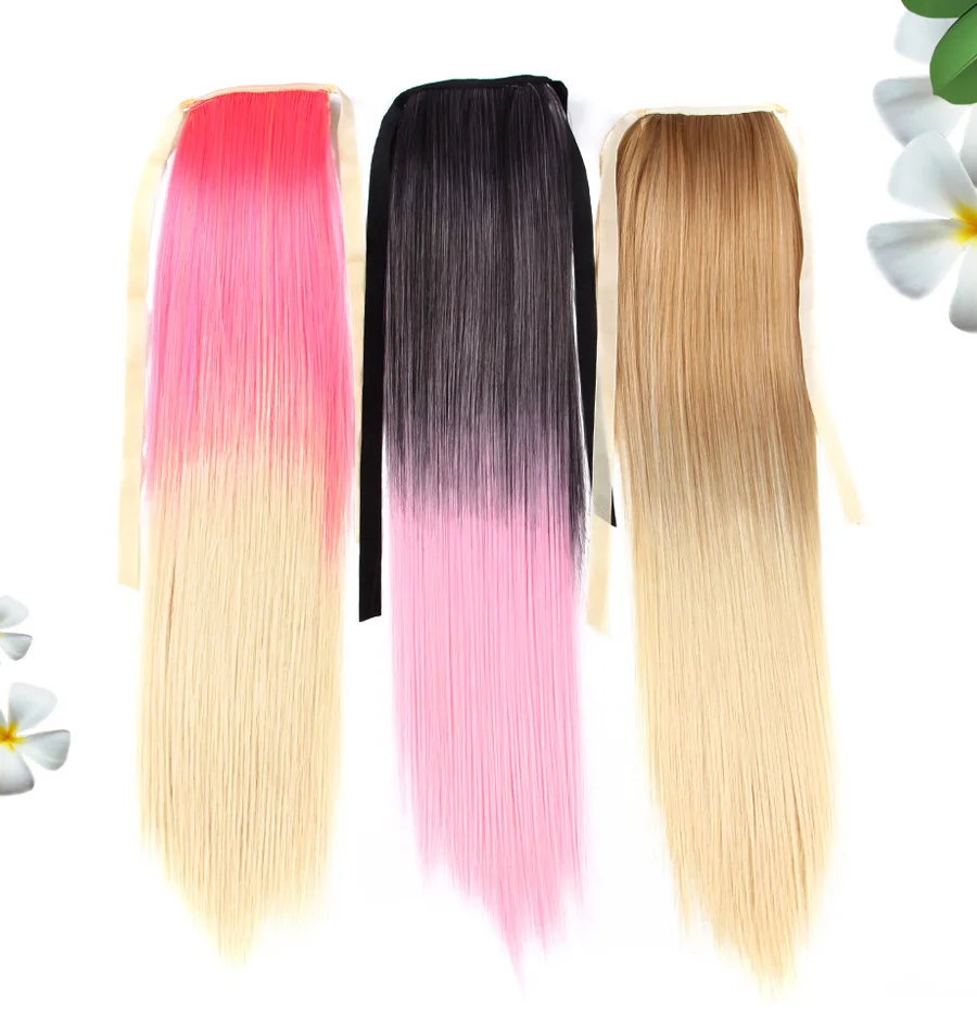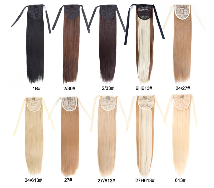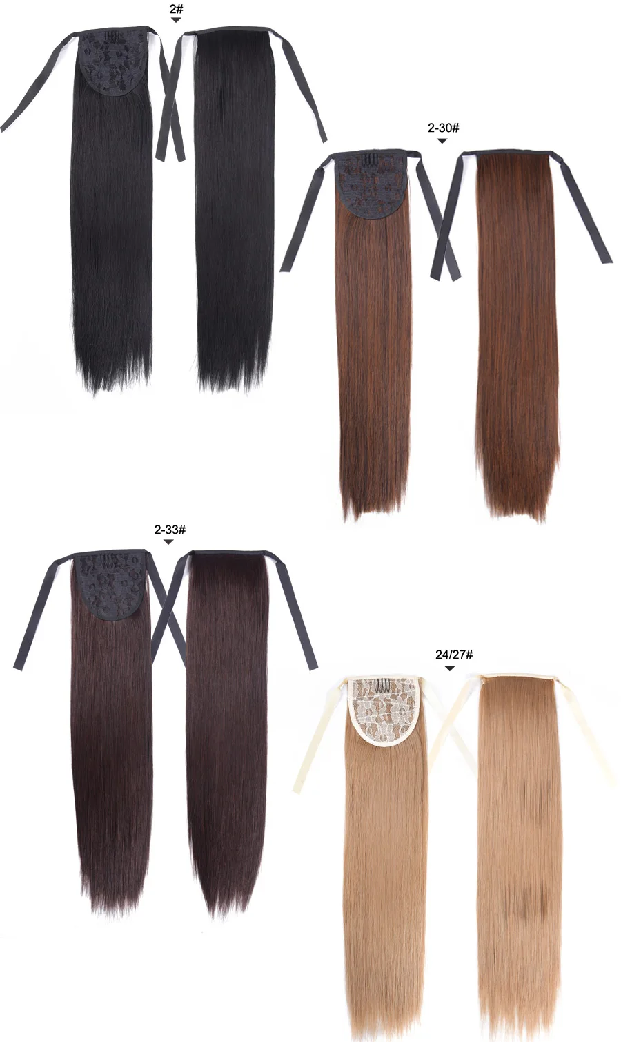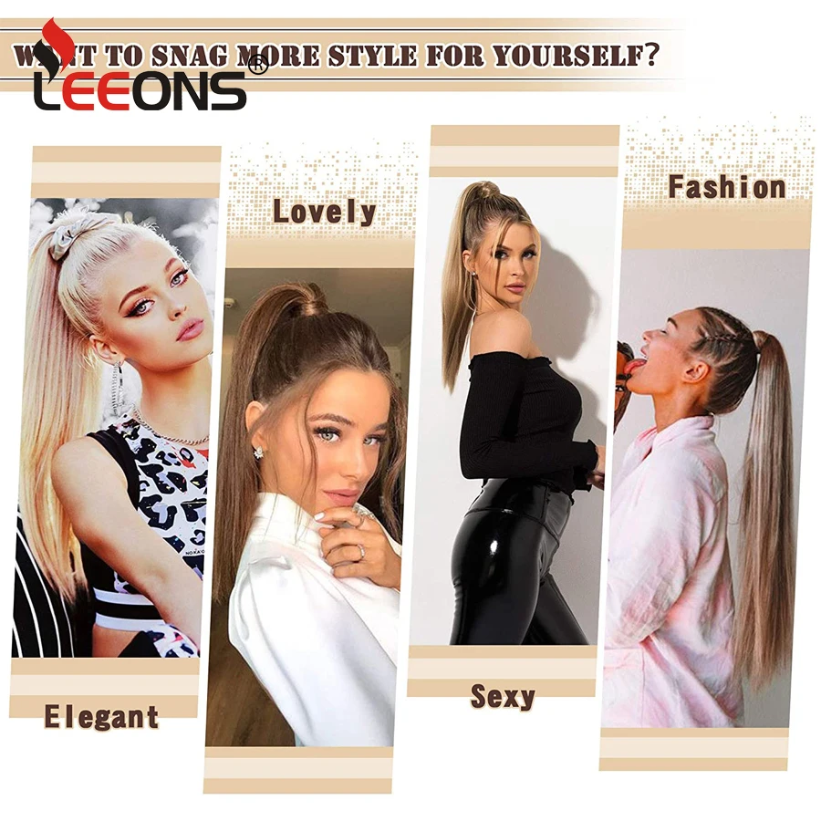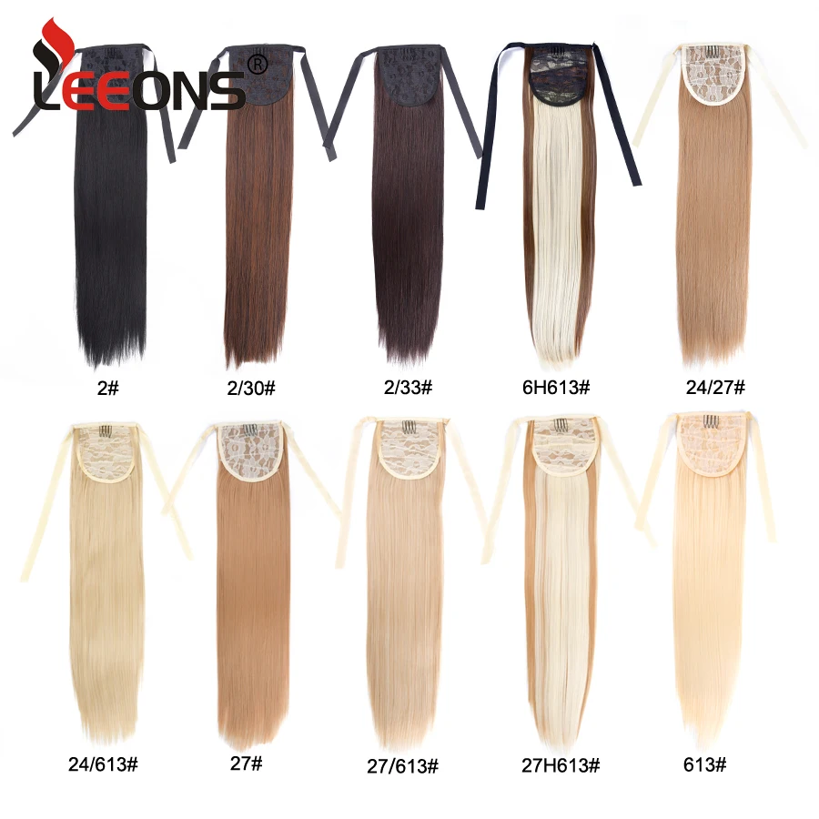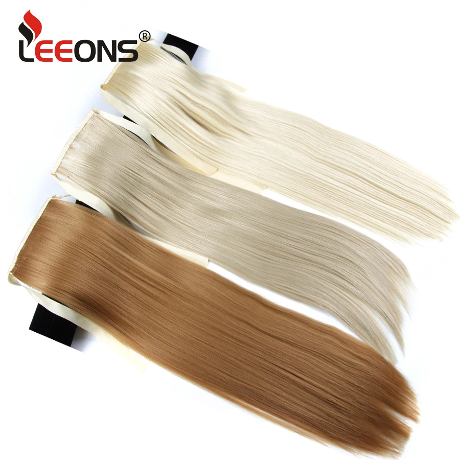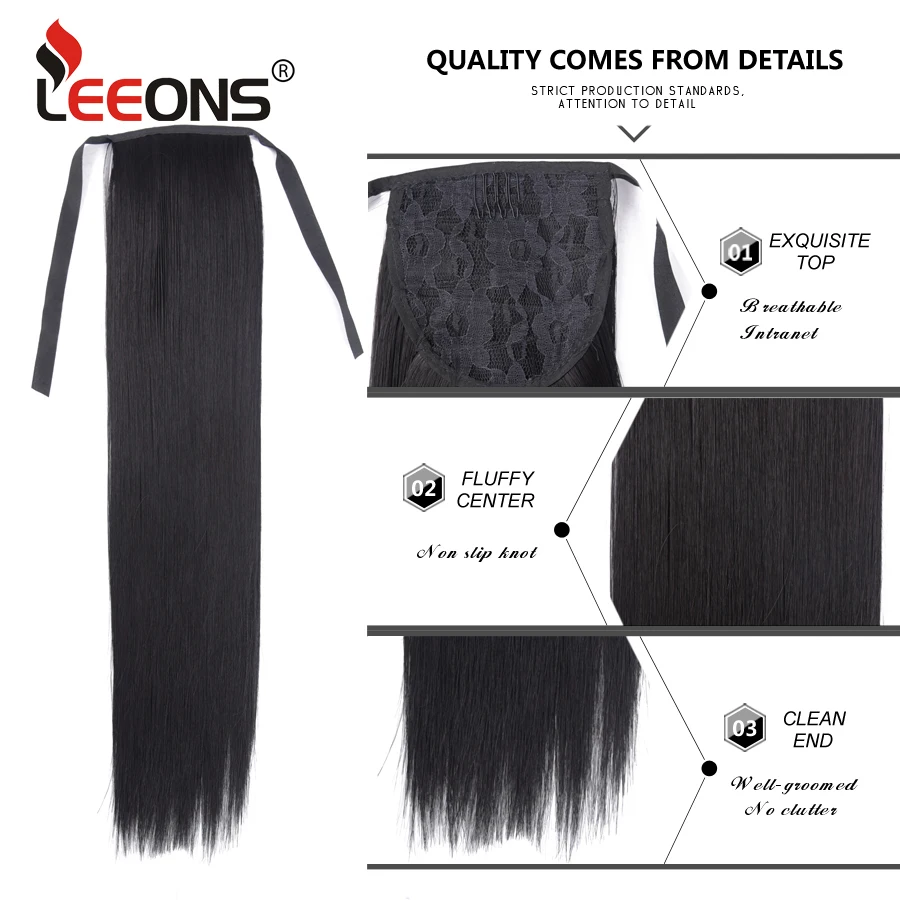 Leeons синтетический шиньон охватывает прямой конский хвост удлинение клипса в длину 20 дюймов прямой волос хвост для женщин
