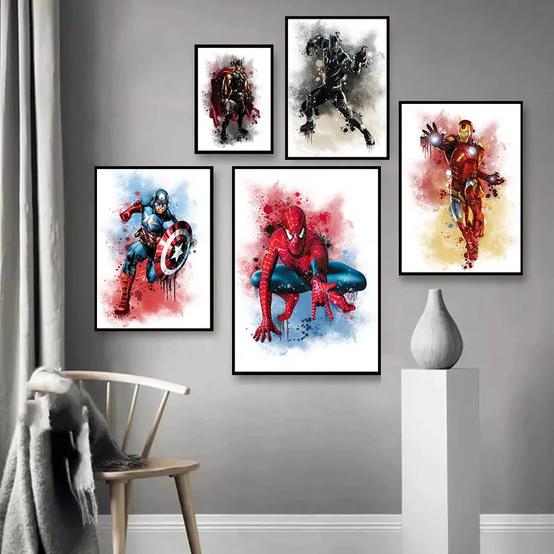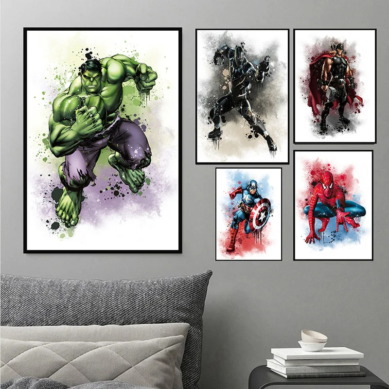 Плакат на холсте, мультяшная картина, Мстители, супергерой, минимализм, акварельная стена, художественный принт, плакат, Подарок, Идея для мальчика, девочки, спальни, фреска