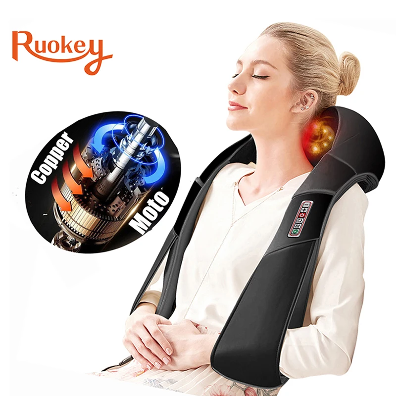 RUOKey, массажер для плеч, электрический ролик, тепло, для домашнего использования, для спины, шеи, инфракрасный, 3D, разминающий массажер, шаль