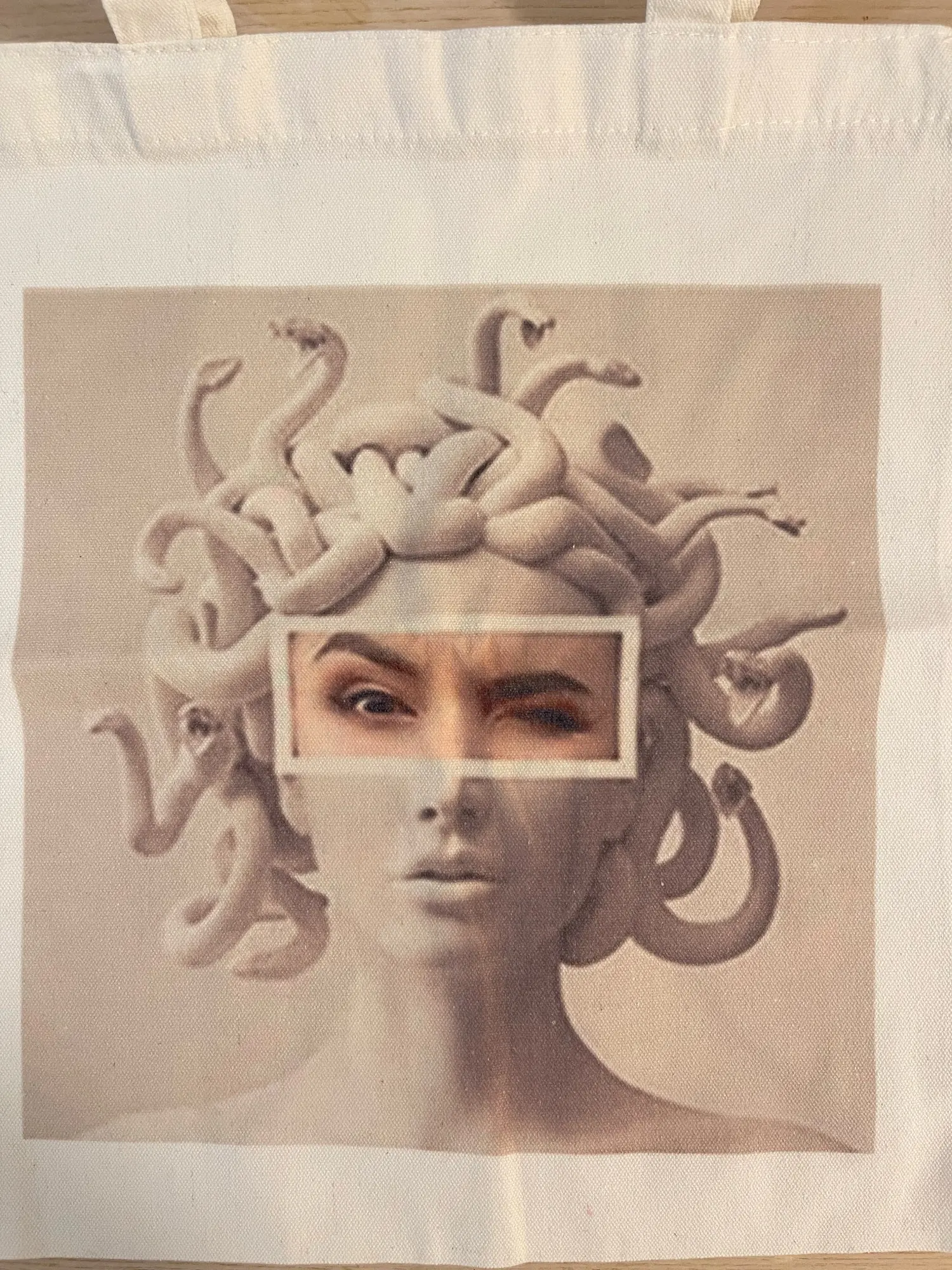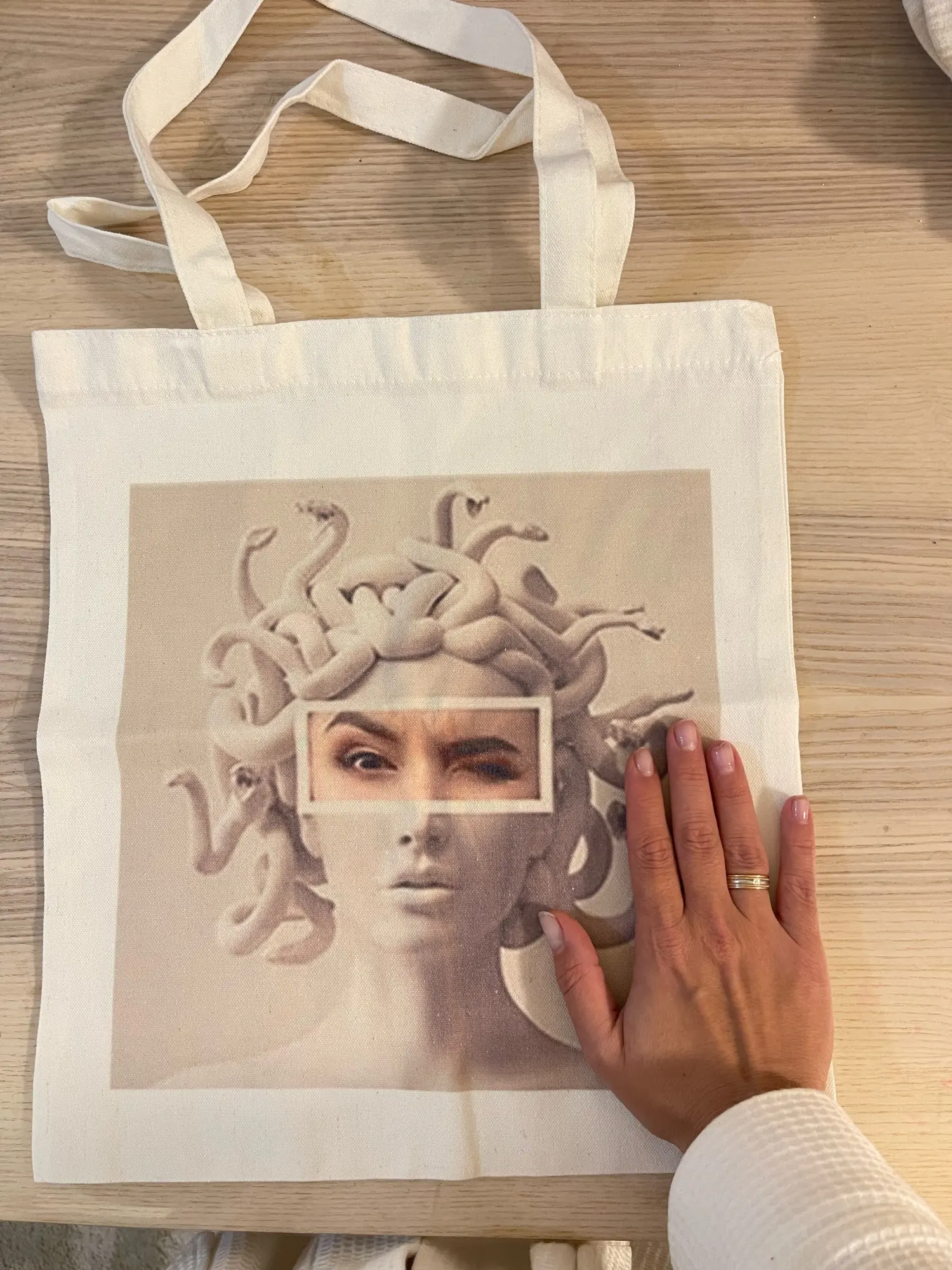 Винтажная холщовая наплечная сумка большой емкости с принтом мифиче...
