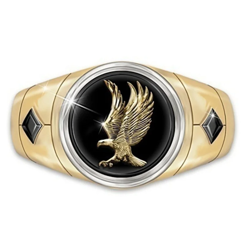 Кольцо мужское с рисунком летающего орела, креативная индивидуальность, изысканная модная вечерняя одежда в стиле хип-хоп с Круглым Черным лицом и Властителем