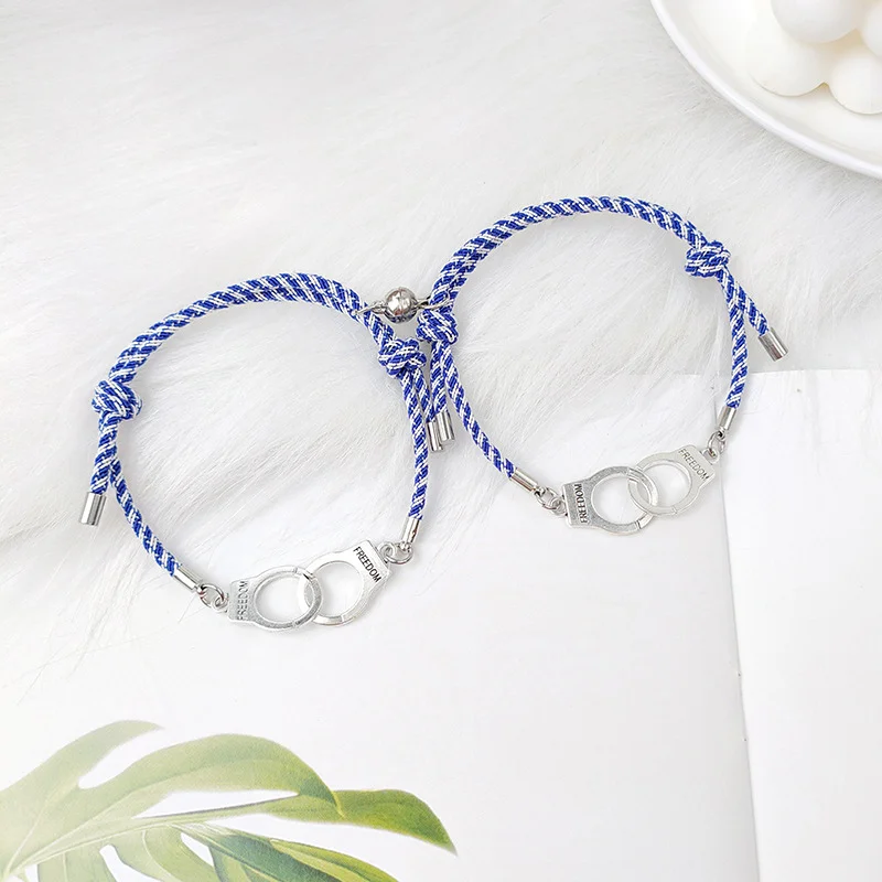 NIUYITID браслет наручники для влюбленной пары, для семьи притяжение магнита надписи свободу наручные ювелирные изделия с веревкой Регулируемый ручной работы