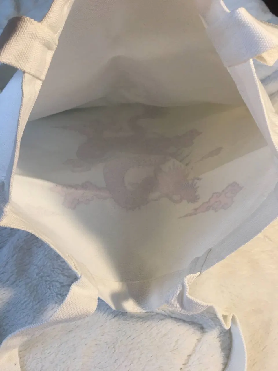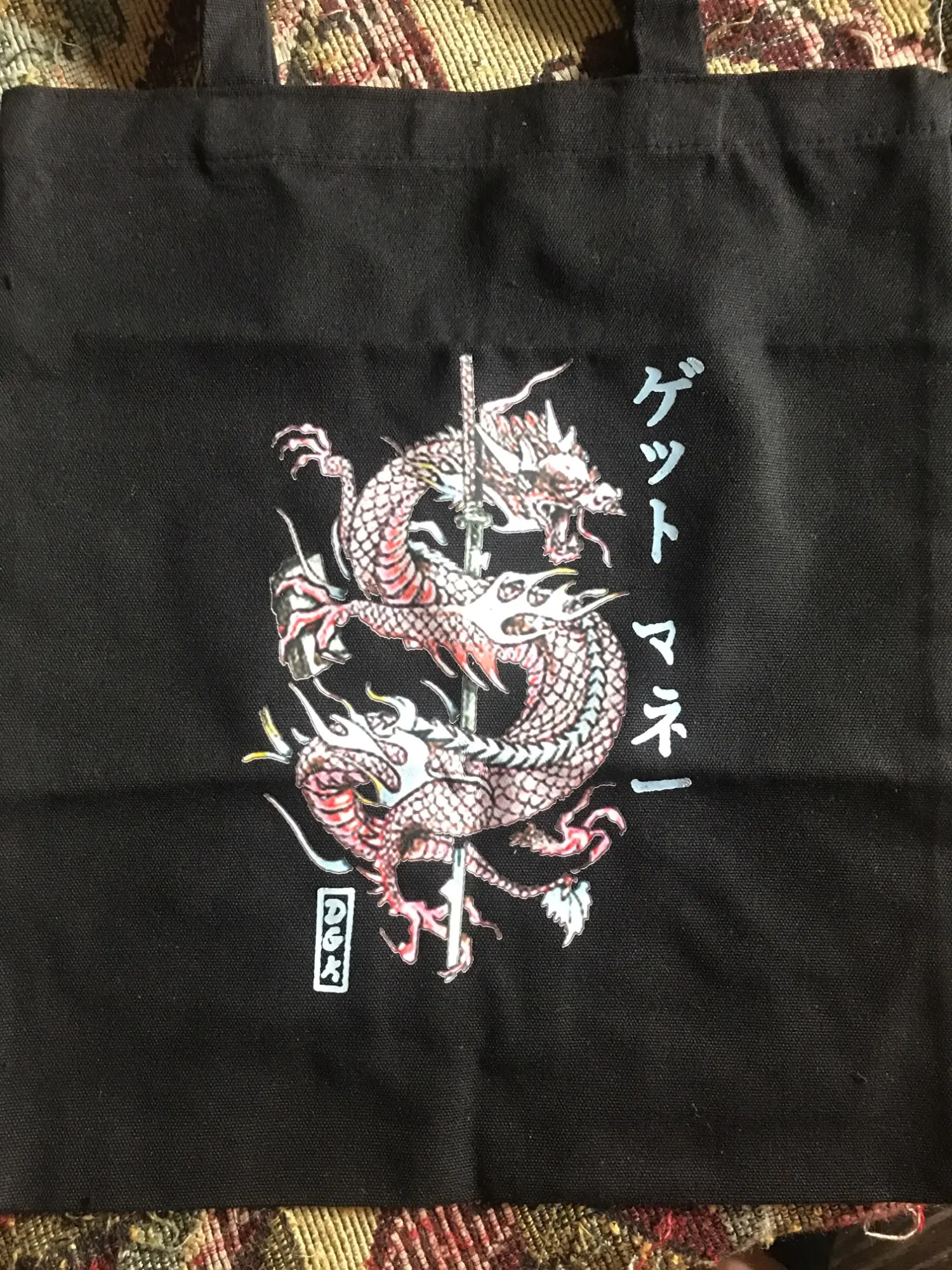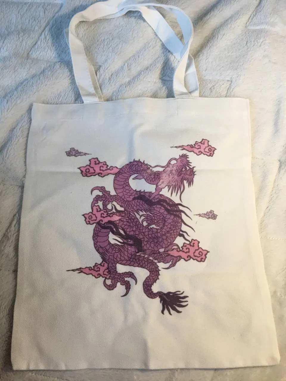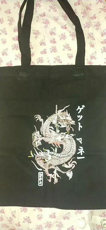 Посылка была хорошо упакована,качество самой сумки-супер,очень плотный материал,только вот принт,оказался не очень качественным,дракон-это наклейка,надеюсь после стирки не отклеиться)нитки ни где не торчат вроде,если смотреть сдали на шоппер дракон выглядит норм,но если присмотреться...он приходит немного помятым,но можно его погладить(наверное)
