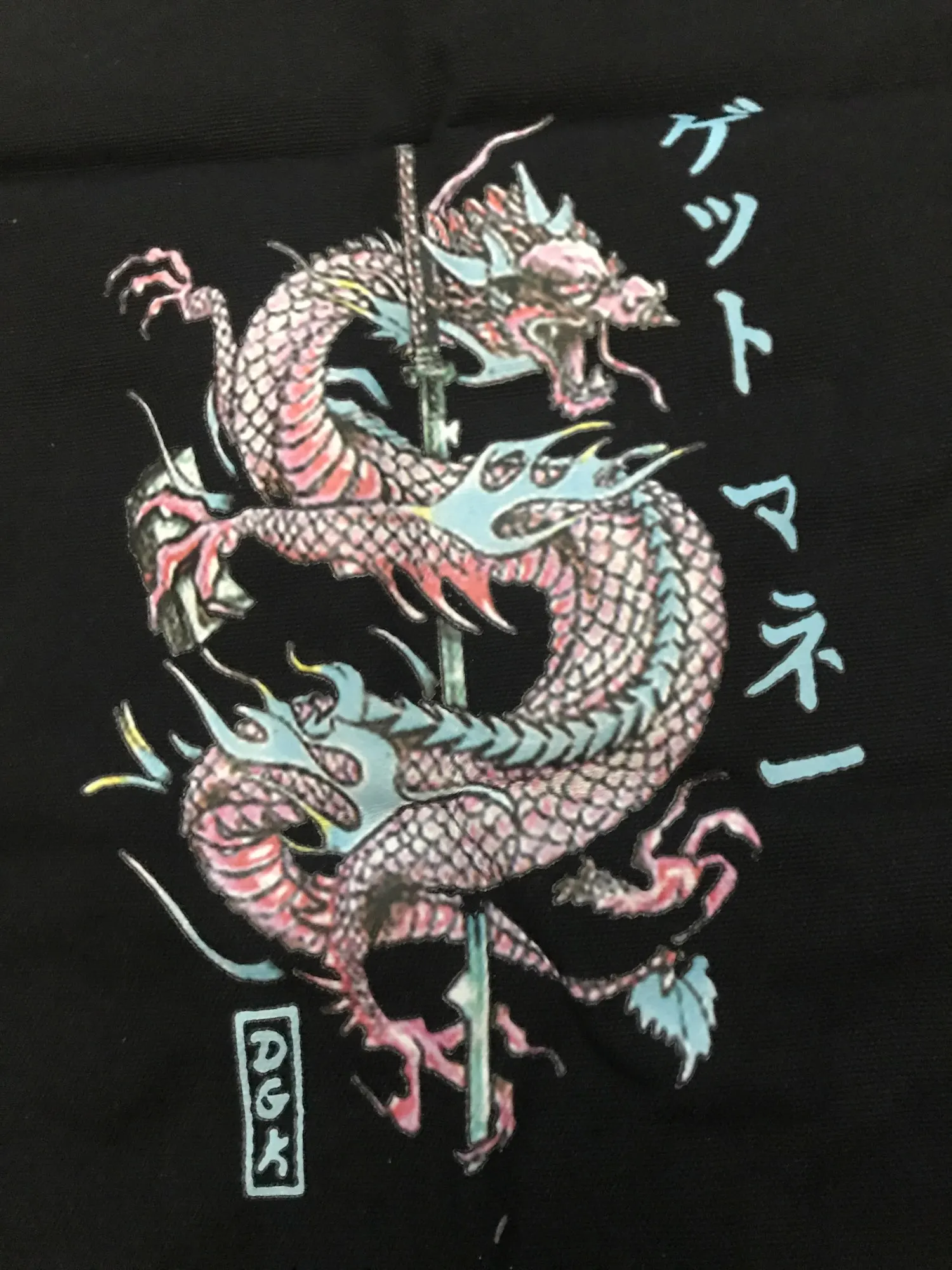 рисунок стёрся немножко у головы дракона и местами на теле, а так все хорошо