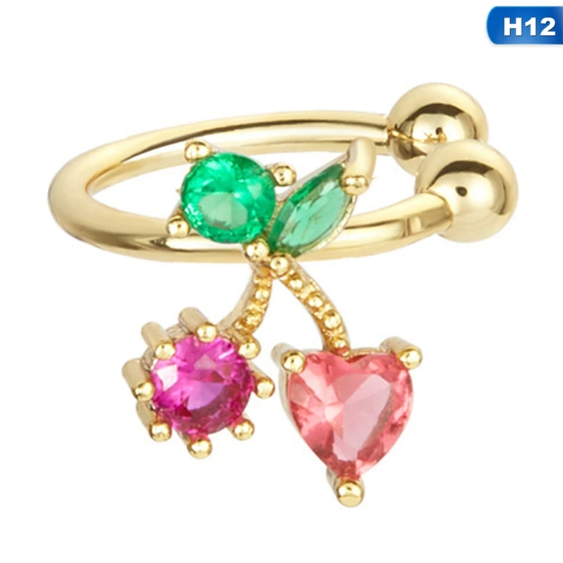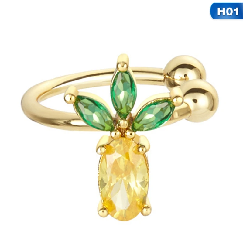 Цветные циркониевые серьги, Симпатичные вишня, ананас, клубника, оранжевый, персик, тропические фрукты, клипсы для ушей для женщин и девочек, ювелирные изделия, клипсы для ушей