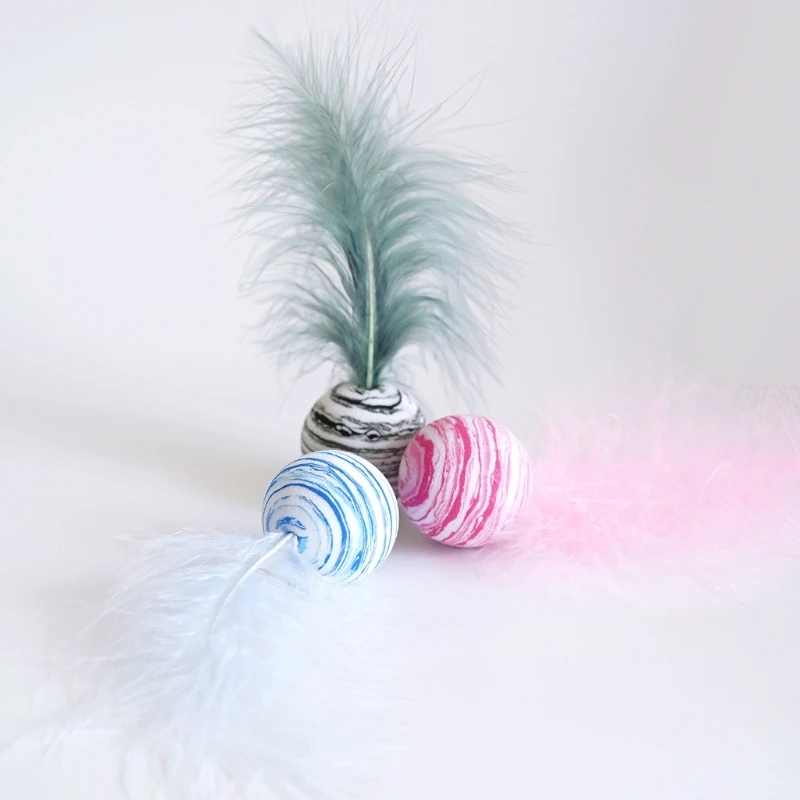 Игрушки для кошек, мяч с перьями, мяч-батут, интерактивные игрушки для домашних животных
