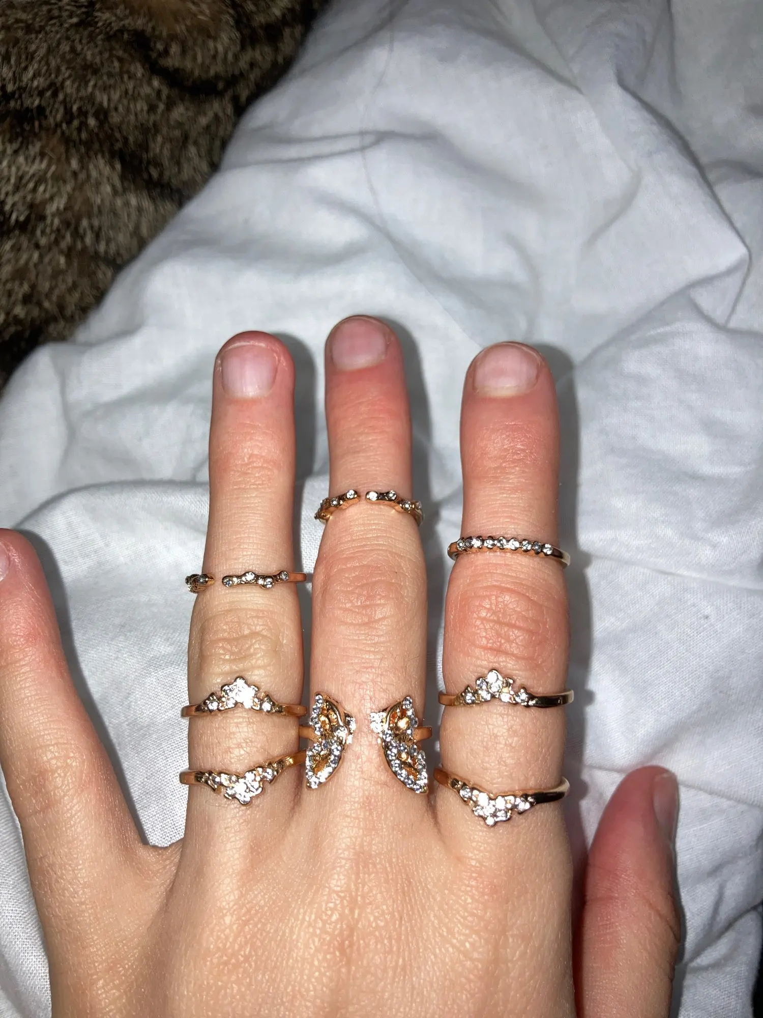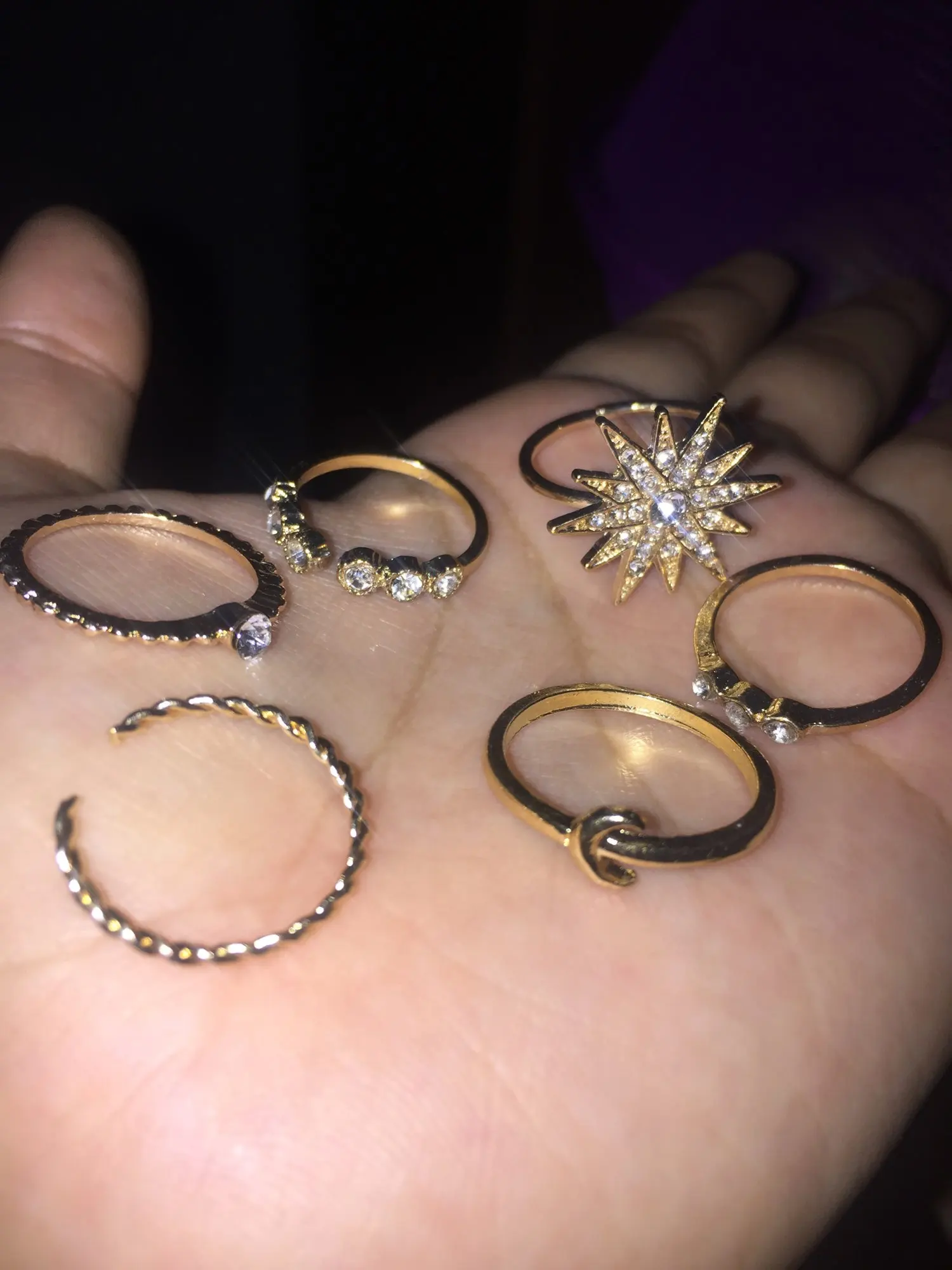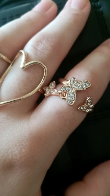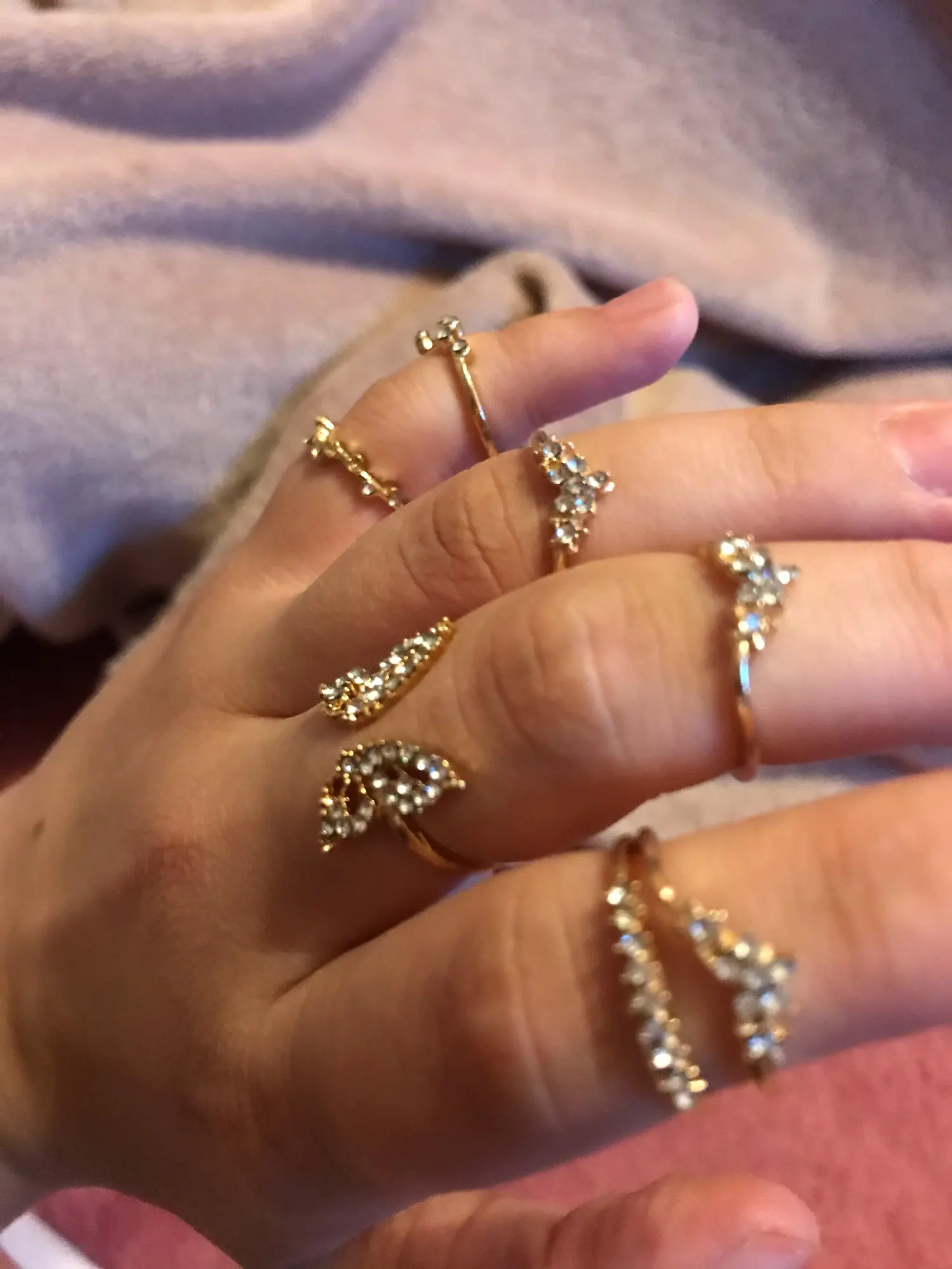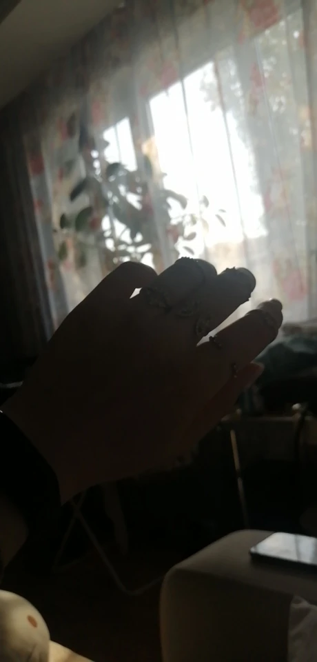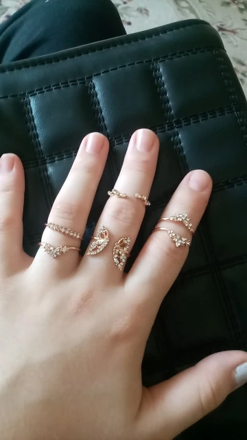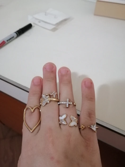 Товар получен в хорошем состоянии. Точно такой же, как на картинке. Однако некоторые части колец были слишком маленькими для моего пальца и должны были надеть их на мой розовый