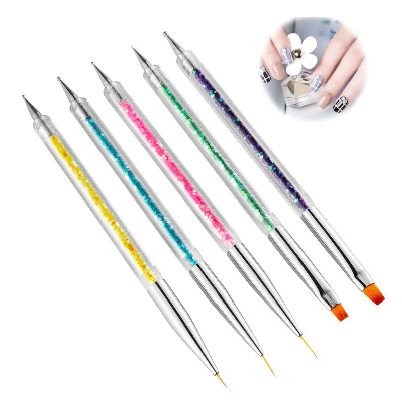 5 шт.компл. ручка для дизайна ногтей с двойным наконечником для све...