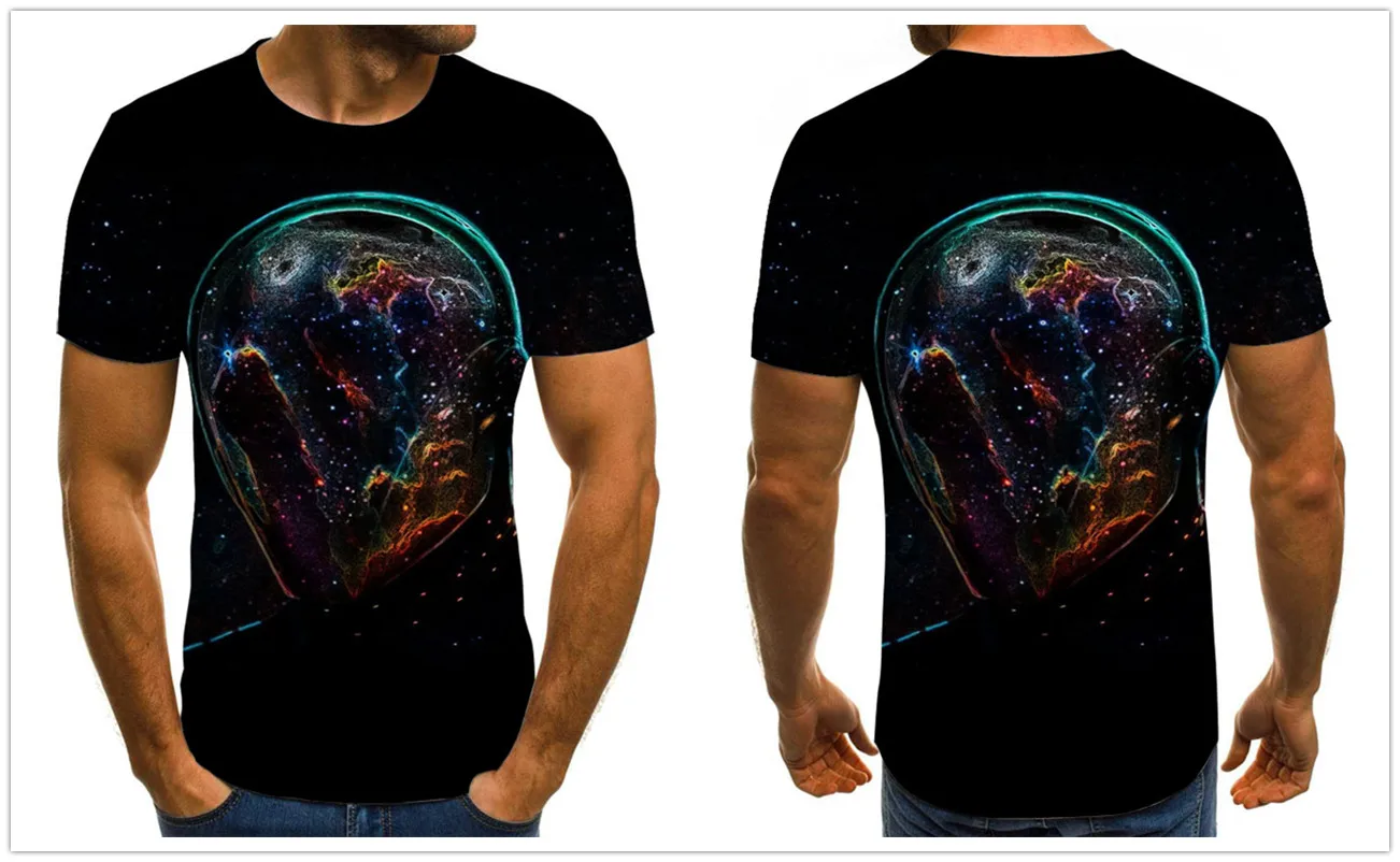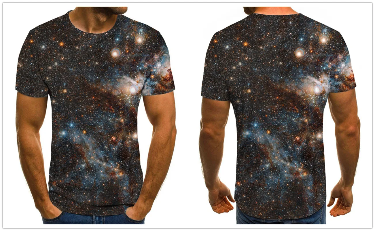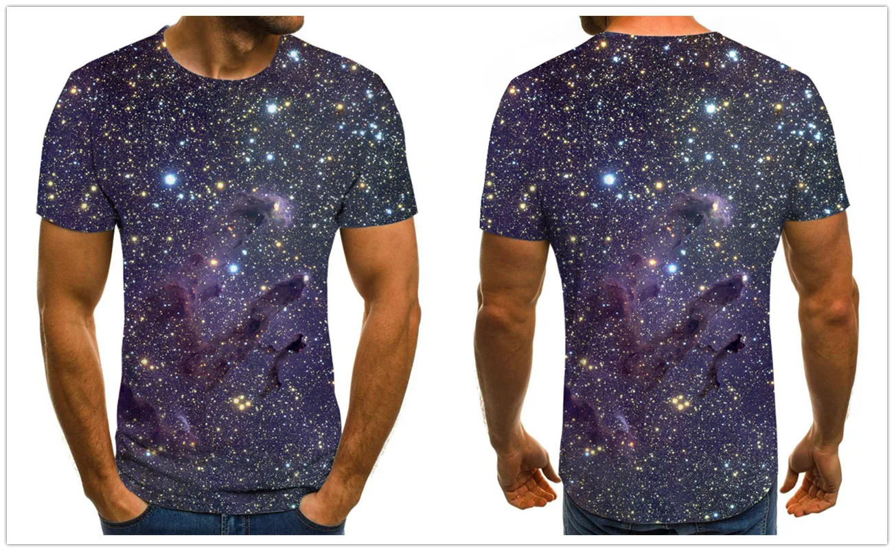 Новинка 2021, Оригинальная футболка с 3D принтом звездного неба, мужская летняя забавная футболка, уличная одежда, мужской размер