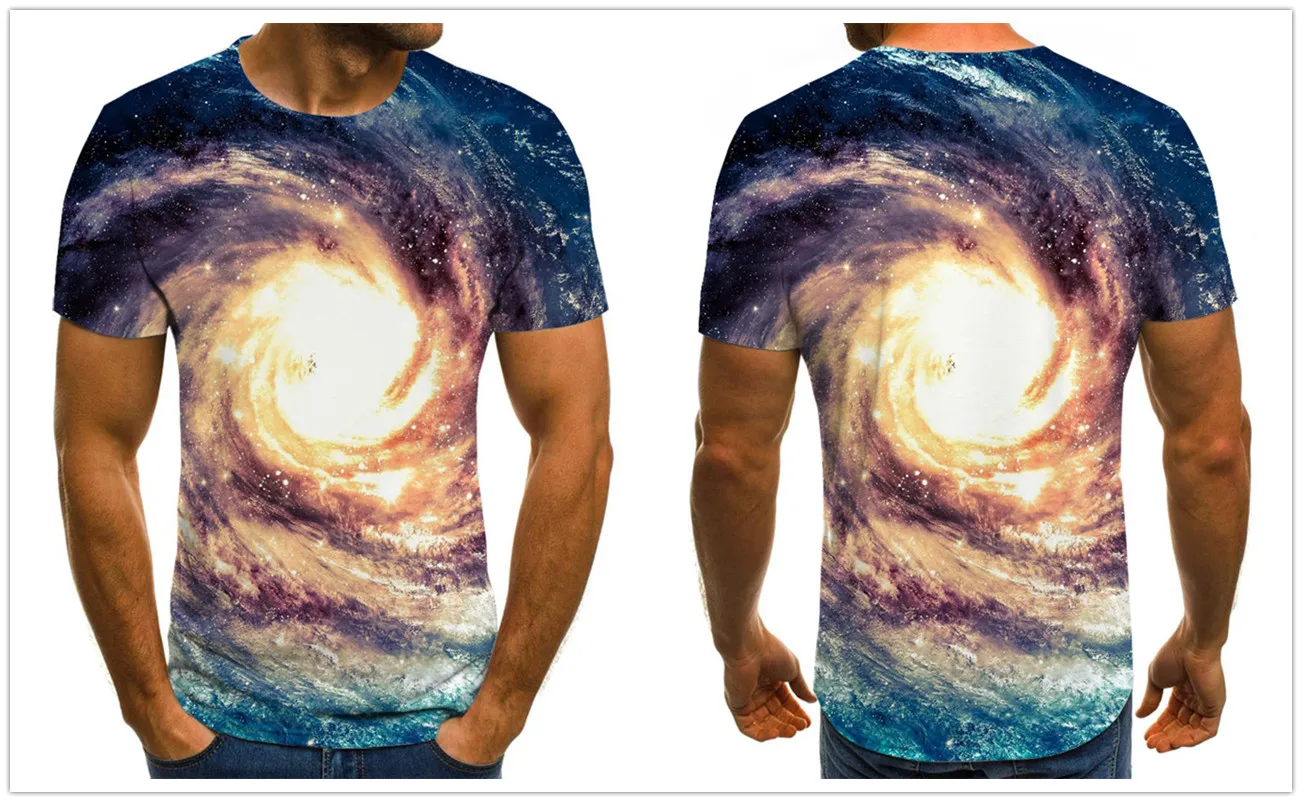 2021 футболка с 3D принтом звездного неба Мужская Летняя Повседневн...
