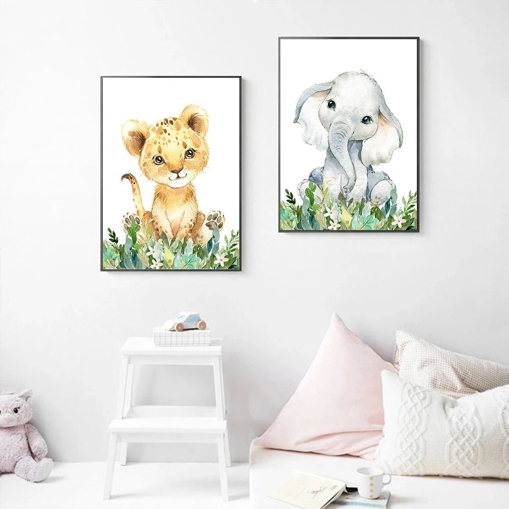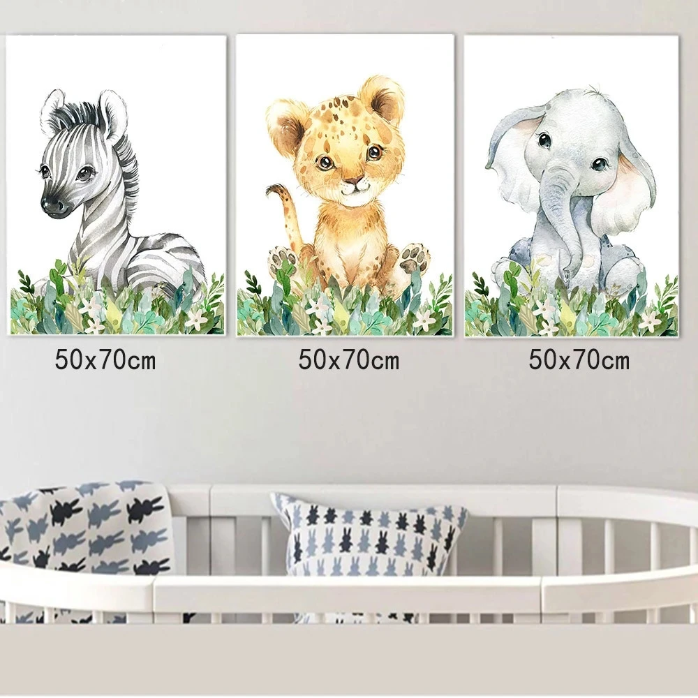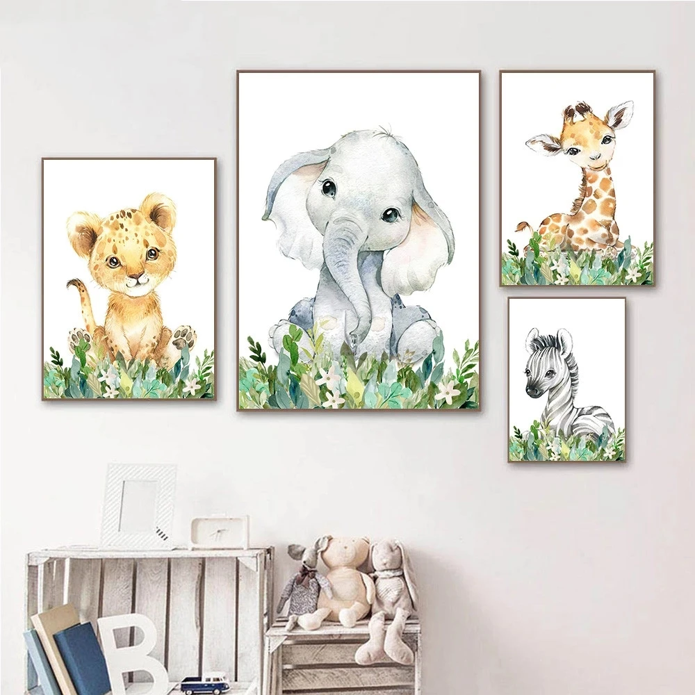 Настенные художественные постеры с изображением лесных животных, фотография детской комнаты, зебры, жирафа, слона, Настенный декор для детской комнаты