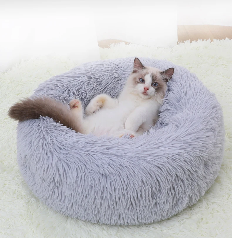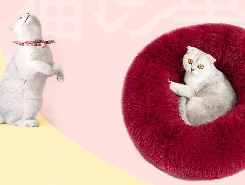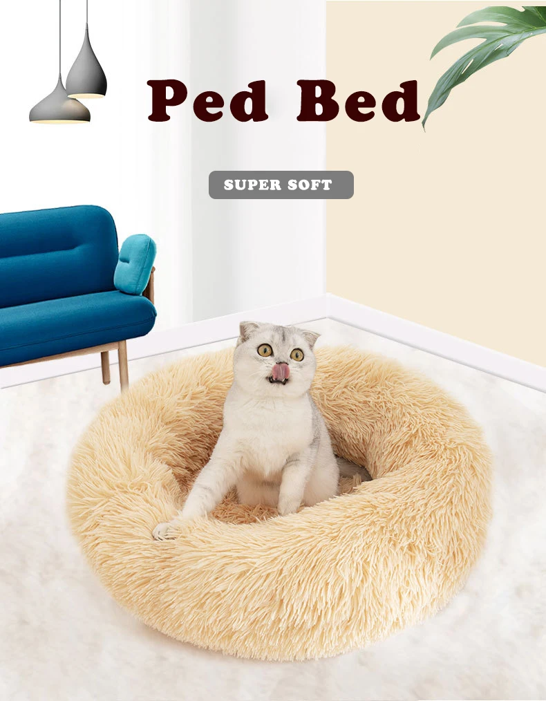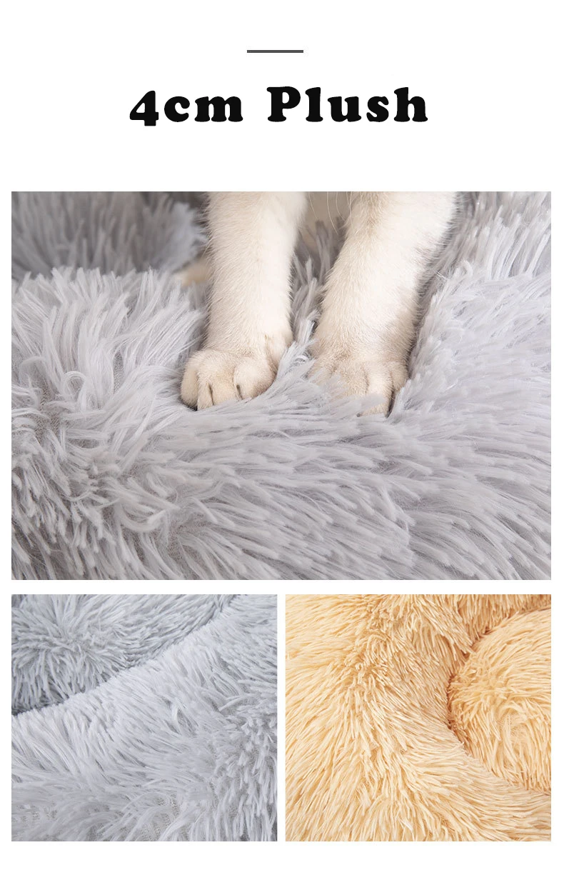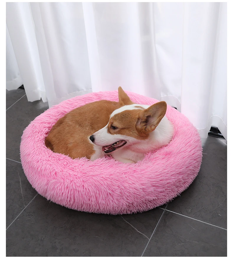 Круглая длинная плюшевая подушка для собаки, кровать для питомца, Конура, супер мягкая пушистая удобная для маленьких и больших кошек, собак, теплая кровать для сна, коврики