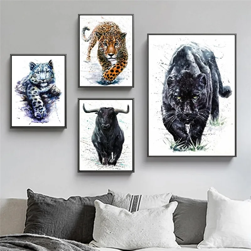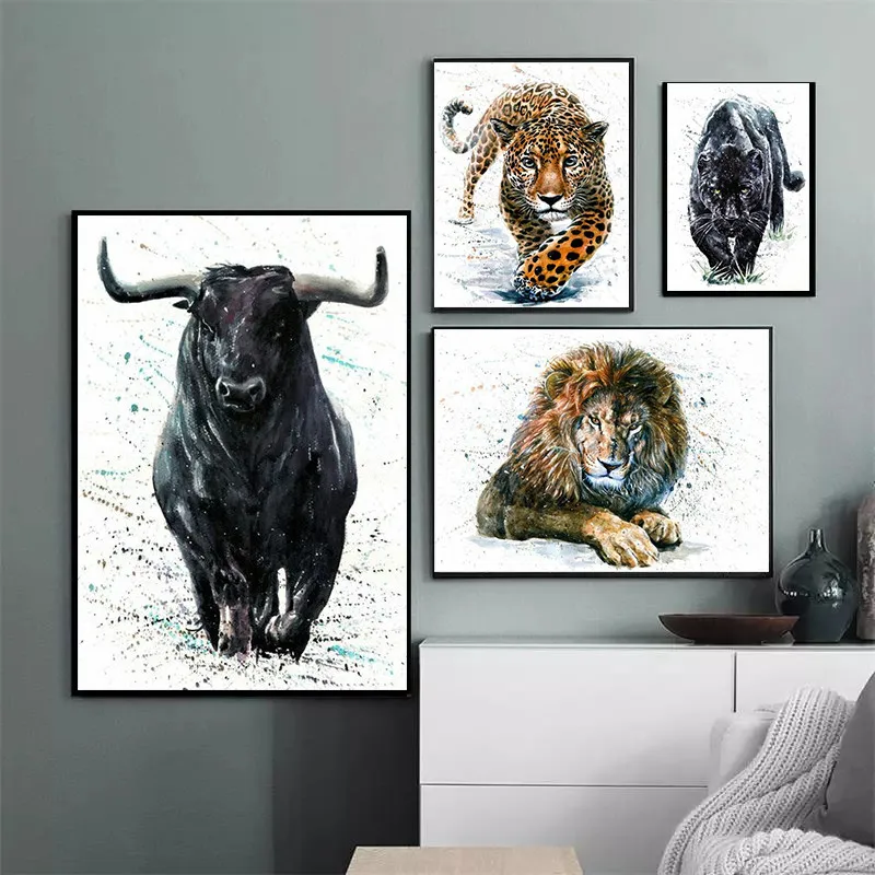 Черная пантера лев тигр Бизон Леопард настенная живопись холст скандинавские плакаты и принты настенные картины для декора гостиной