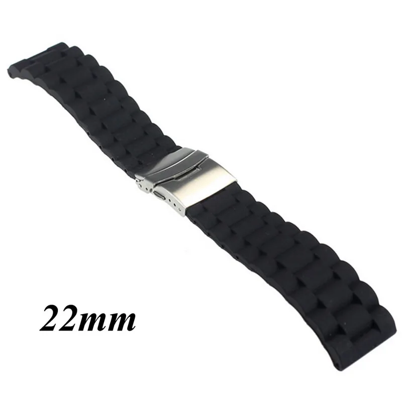 Черный силиконовый резиновый ремешок M2EB для часов, ремешок с пряжкой, водонепроницаемый 20 мм 22 мм