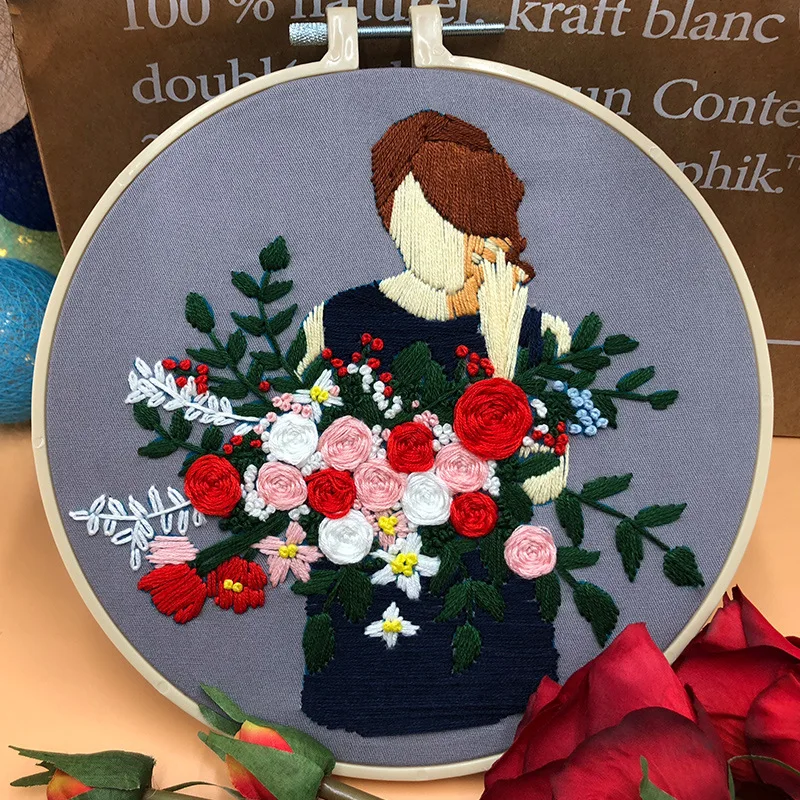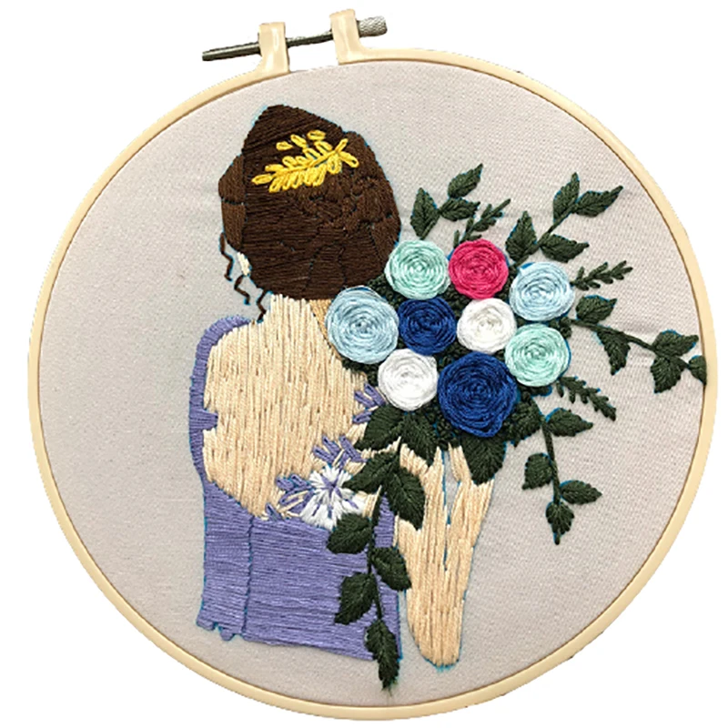 Наборы для вышивания для девочек-начинающих и с цветами, круглая швейная рукоделие, набор сделай сам, ткань, сумка, домашний декор