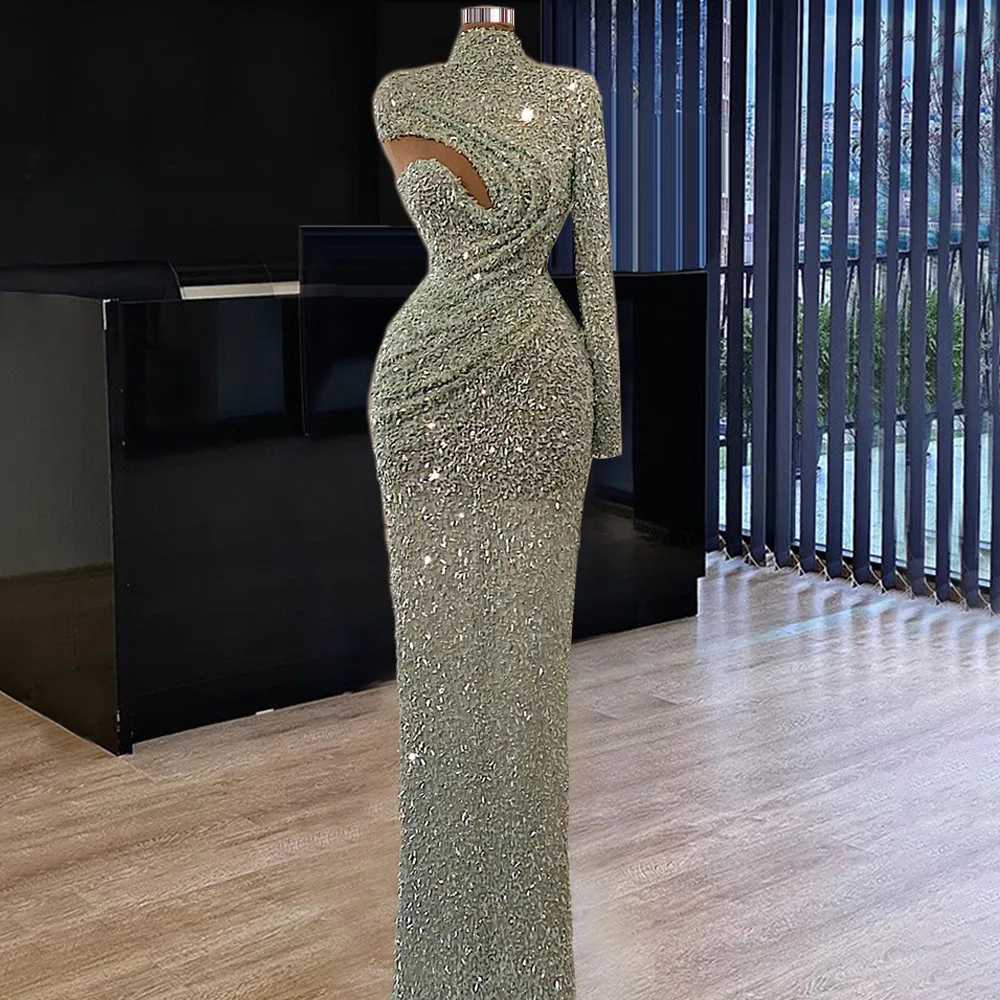 Длинные вечерние платья, зеленого цвета, с одним рукавом, для выпускного, из специальной ткани, в африканском стиле, 2021