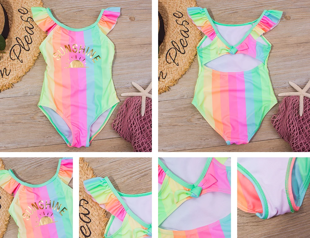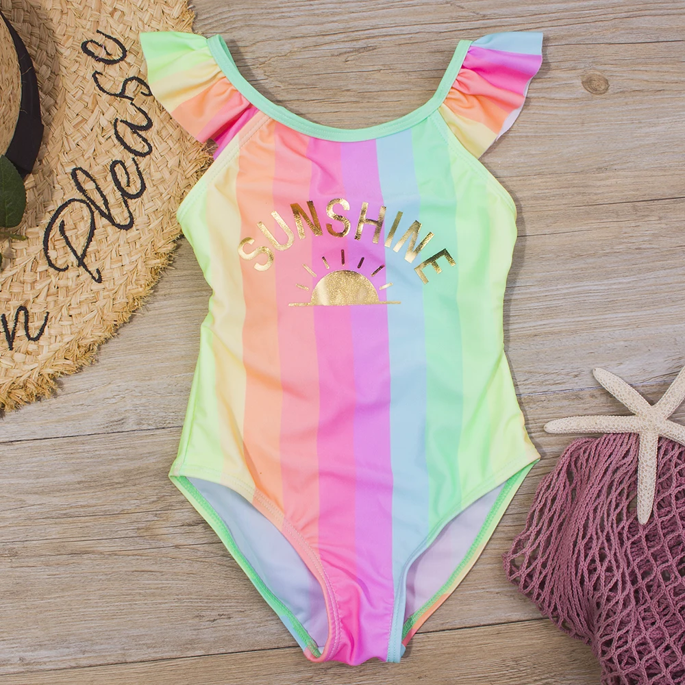 Женский слитный купальник для маленьких девочек, Радужный купальник...