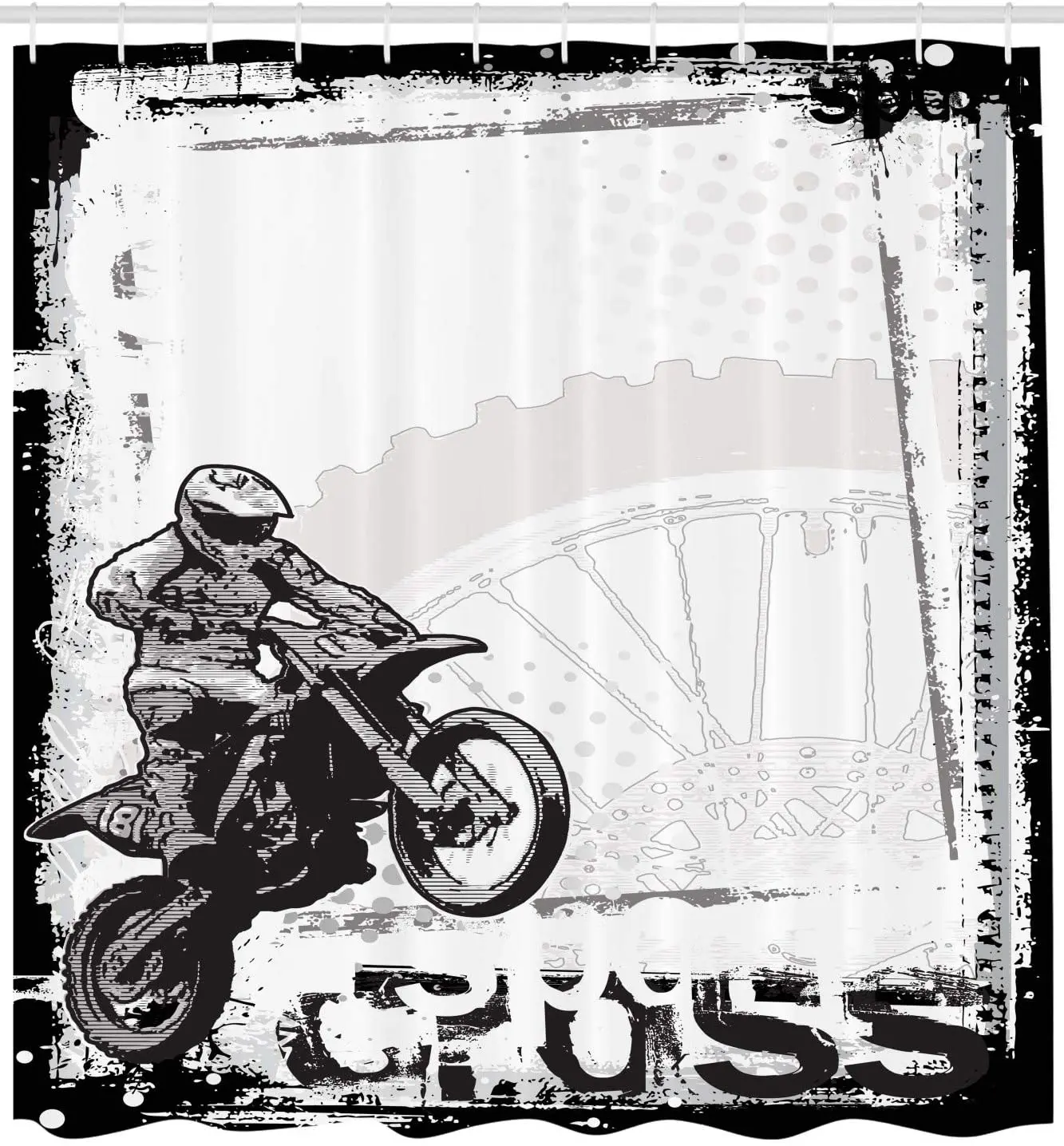 Мотоциклетная занавеска для душа, Мотокросс, гонщик, гранж-стиль, монохромный водонепроницаемый декор для ванной комнаты с крючками