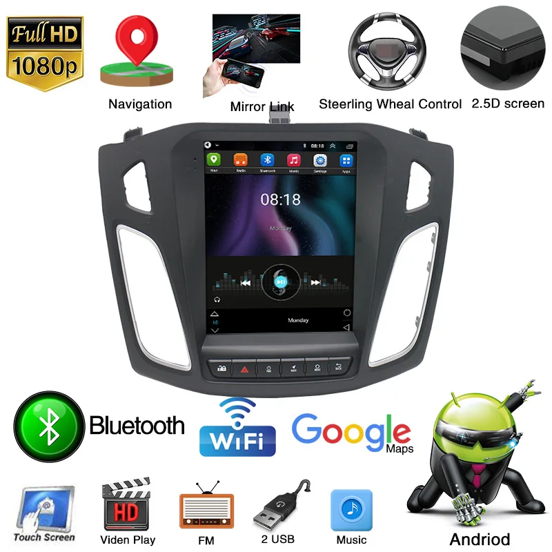 Автомагнитола для Ford Focus 12-18, 9,7 дюйма, 2 + 32 ГБ, Android 1080