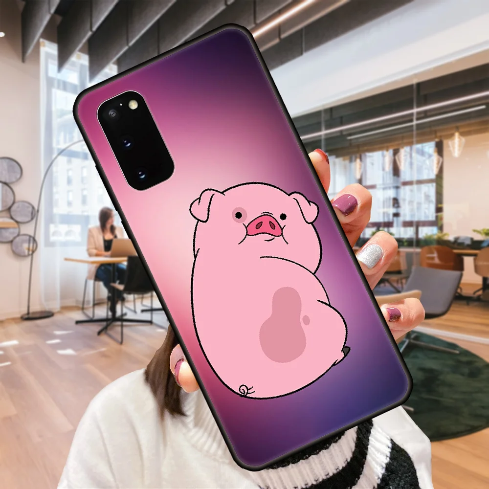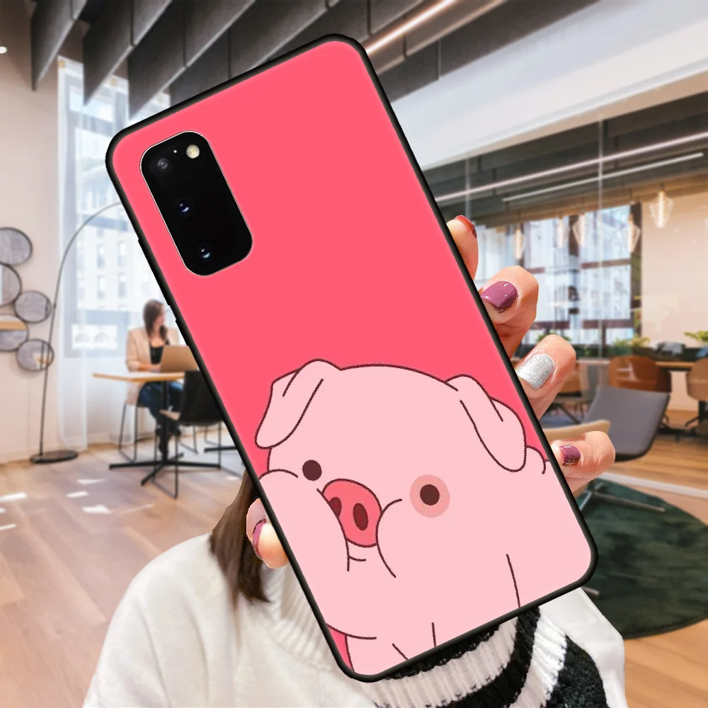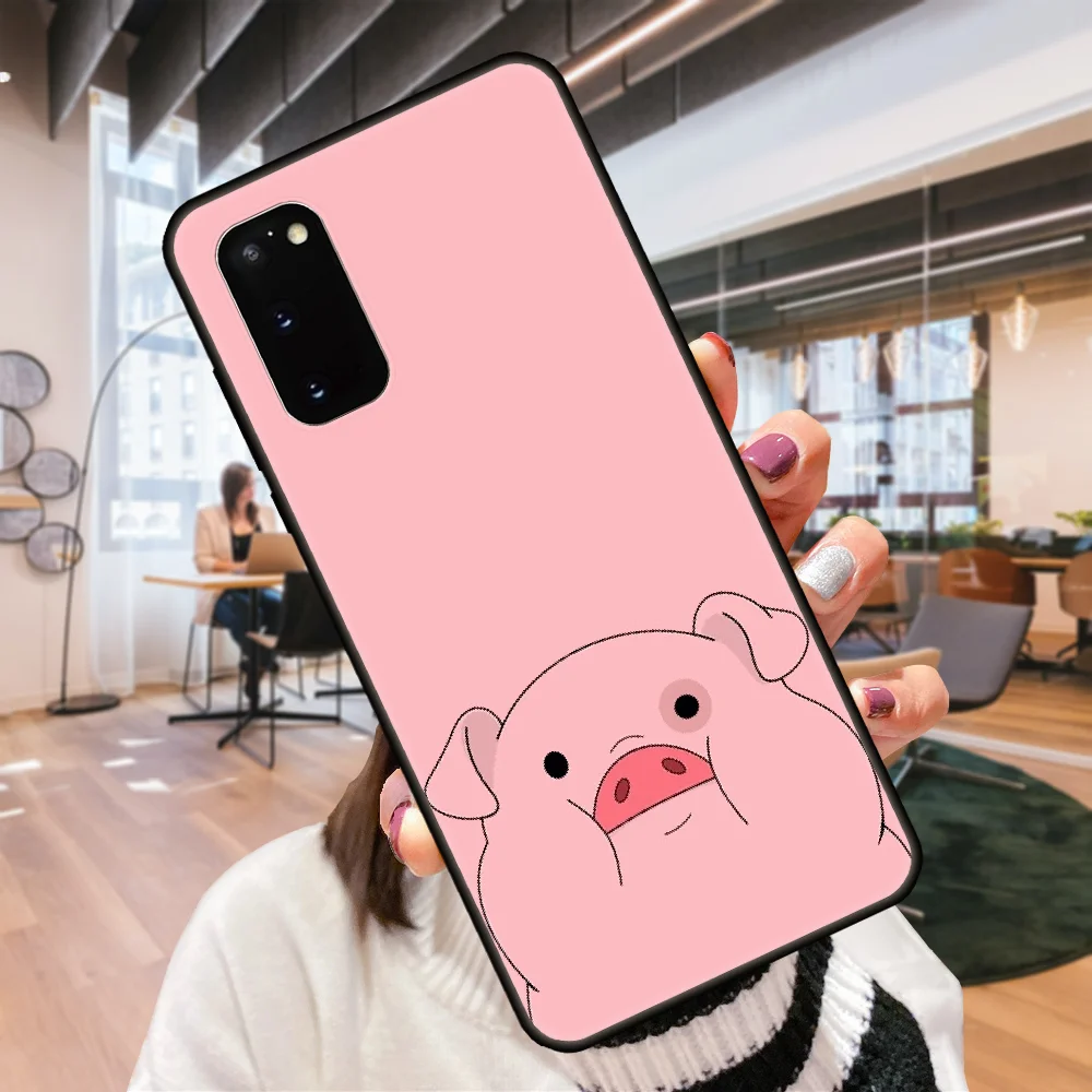 Чехол-накладка для SamSung Galaxy S, Note 10, 20, 7, 8, 9 Plus, Edge E, Ultra Lite, черный, с объемным рисунком свинки кавай