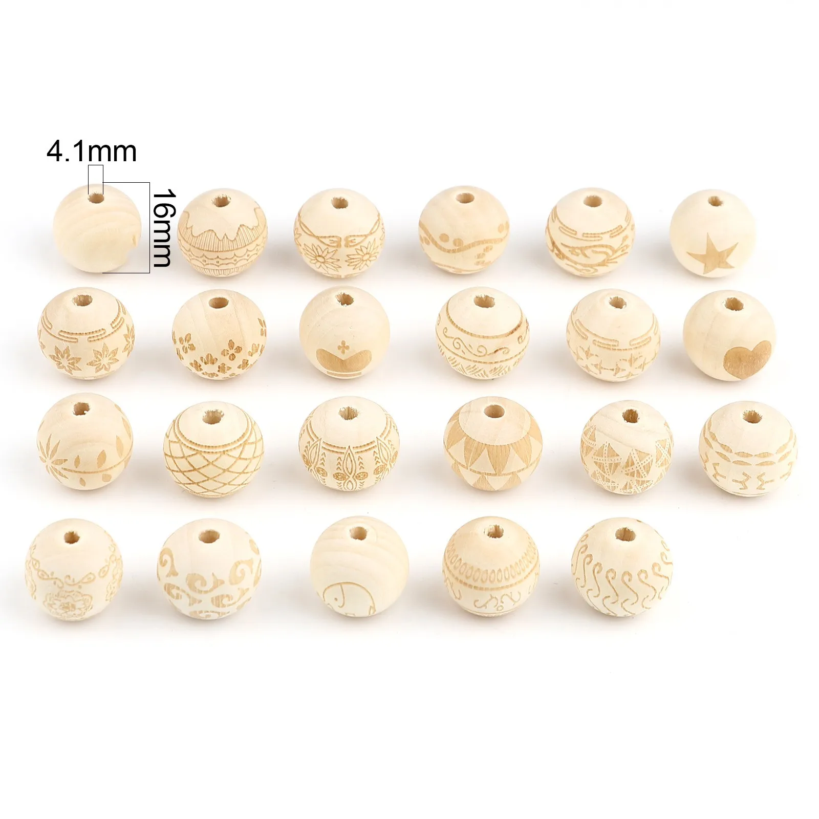 Бусины-разделители из натурального дерева, 1620 мм, круглые бусины с резным узором в виде сердца и цветка, незакрепленные бусины-разделители для самостоятельного изготовления браслетов, ювелирных изделий, 20 шт.