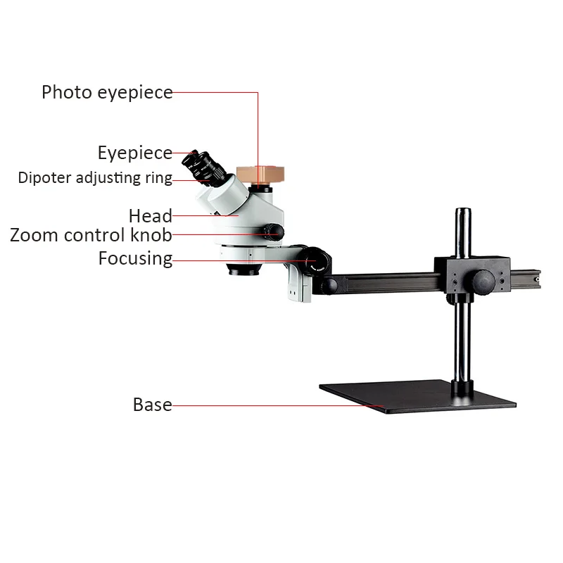 Тринокулярный стереомикроскоп с зумом * 1(SZM7045T-STL8)Пылезащитный чехол * 1Руководство пользователя * 1Белый светодиодный кольцевой светильник * 1Окуляр WF10X/20*1 пара