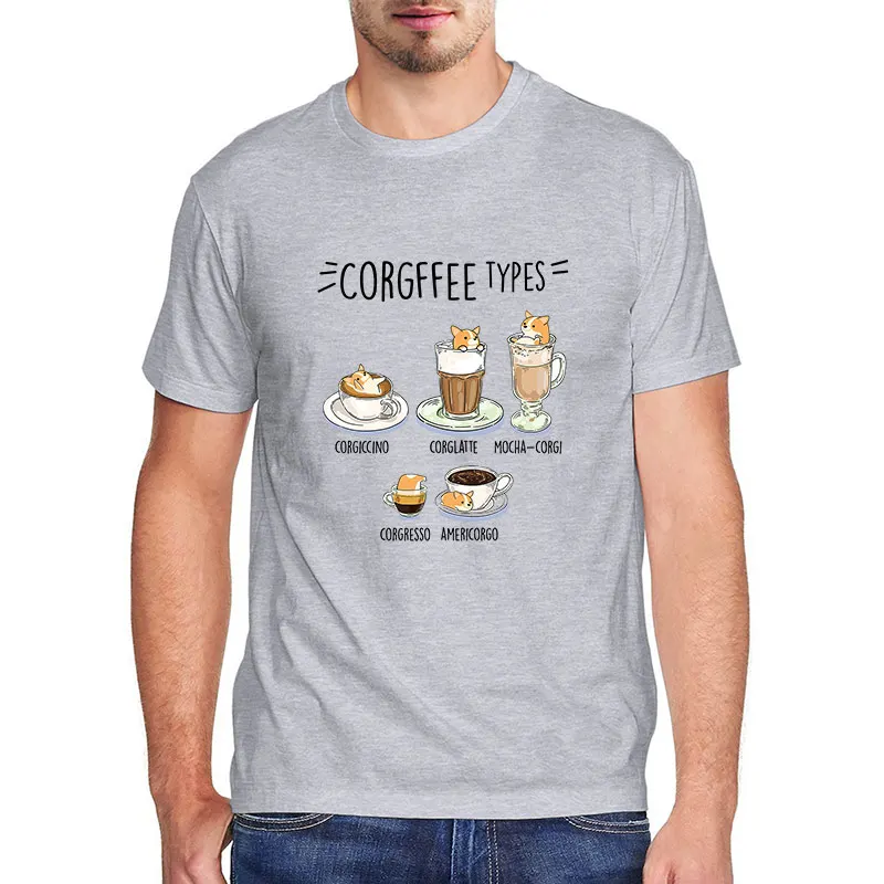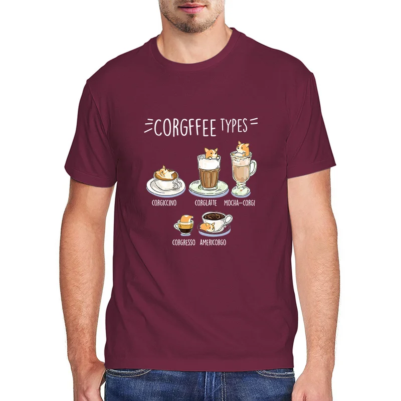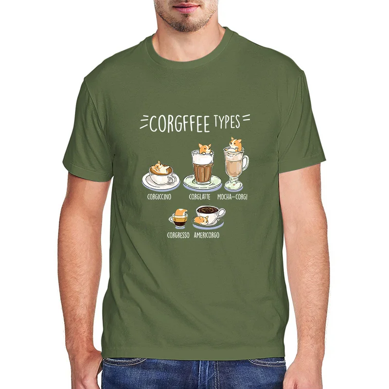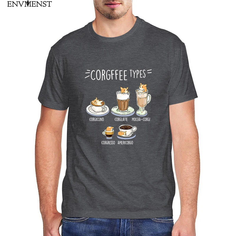 Мужская футболка с изображением корги, собаки, пухленького стиля, искусство пемброка, Уэлш корги, собаки, каваи, кофе, художественная Мужская футболка с коротким рукавом, забавная футболка унисекс
