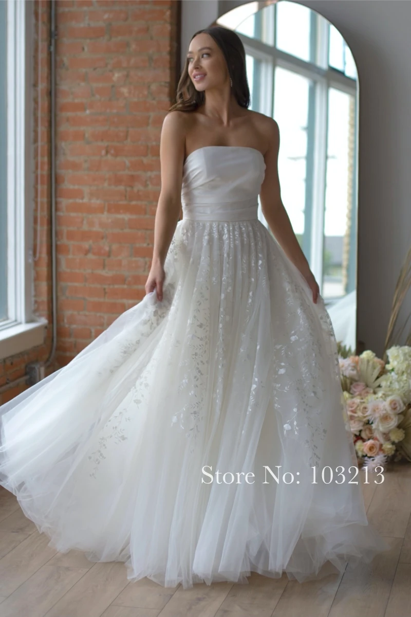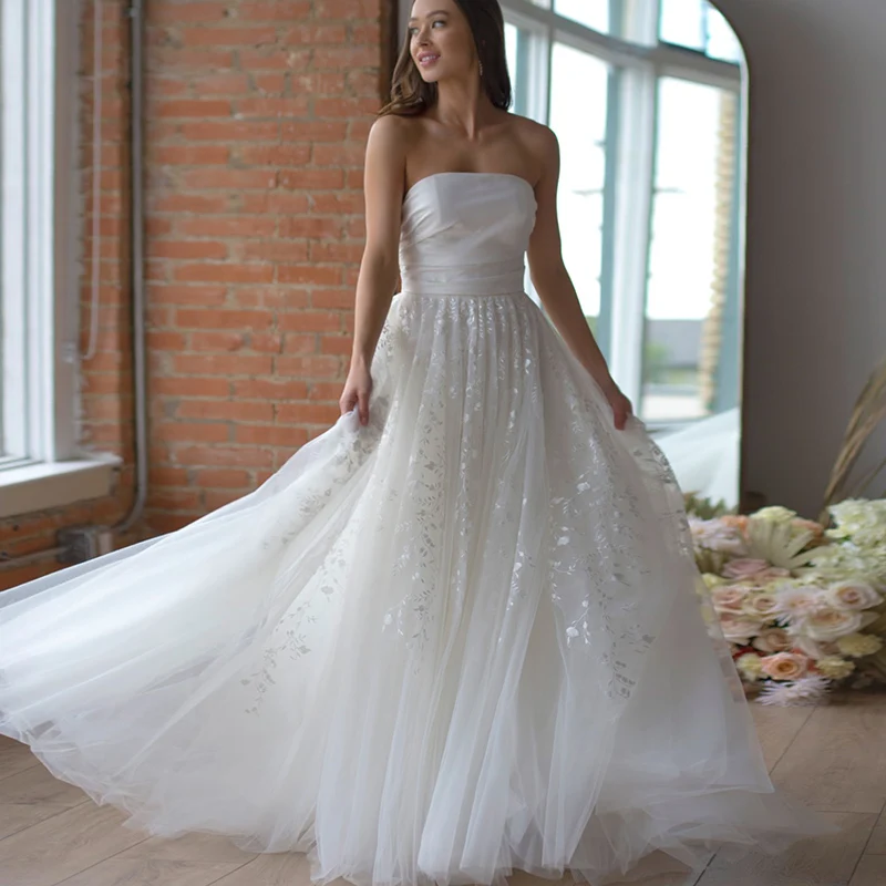 Летнее пляжное свадебное платье, белое, простое, без бретелек, без рукавов, со шлейфом