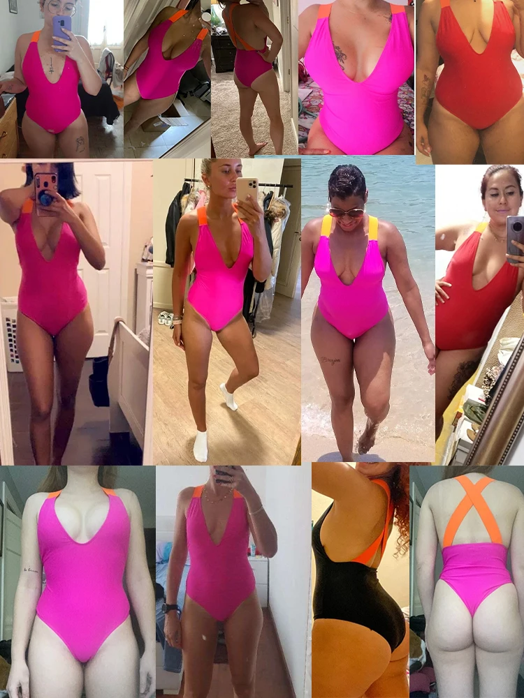 Популярный розовый купальник с глубоким V-образным вырезом, новинка 2020, соблазнительный белый слитный купальник, Женский монокини с перекрестными белыми бретелями, тонкий женский купальник