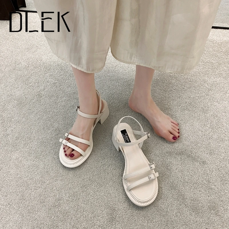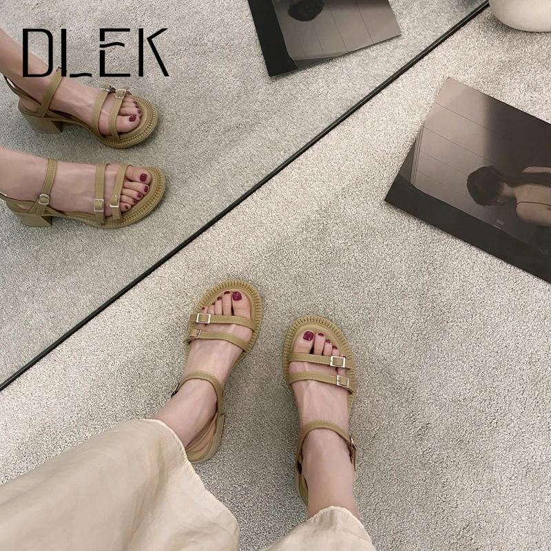 Женские сандалии DLEK на среднем каблуке, элегантная выразительная Дамская обувь с пряжкой, повседневные милые босоножки на блочном каблуке