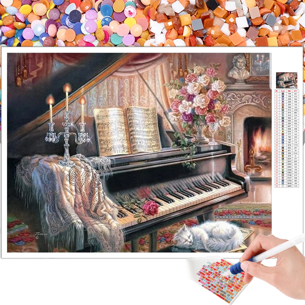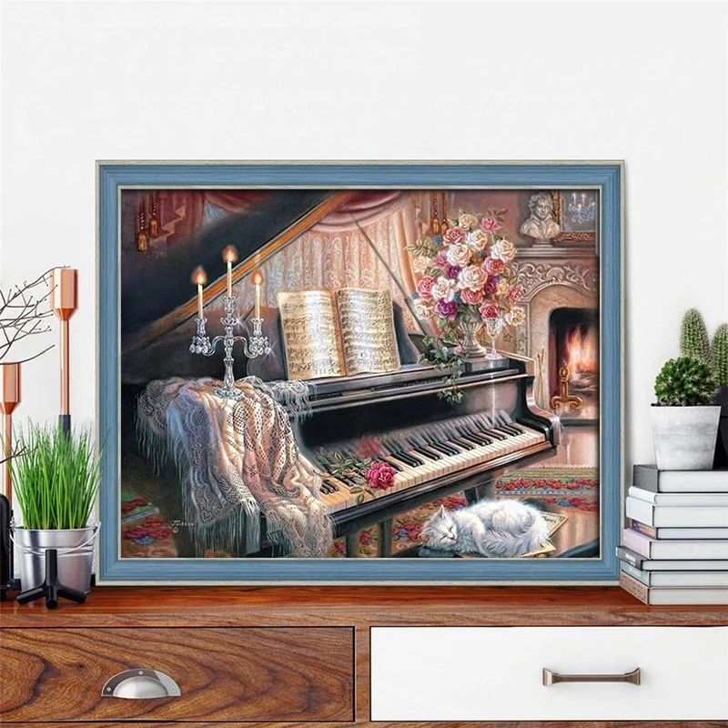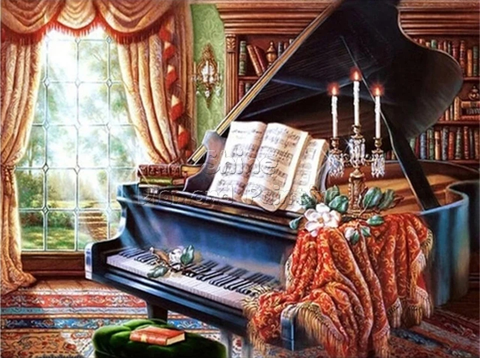 Алмазная живопись, пианино, музыкальный инструмент, семейство 5D, Набор для вышивки своими руками, домашний декор, мозаика, квадратная, круглая стразы, фреска icon star icon star icon star icon star icon star
