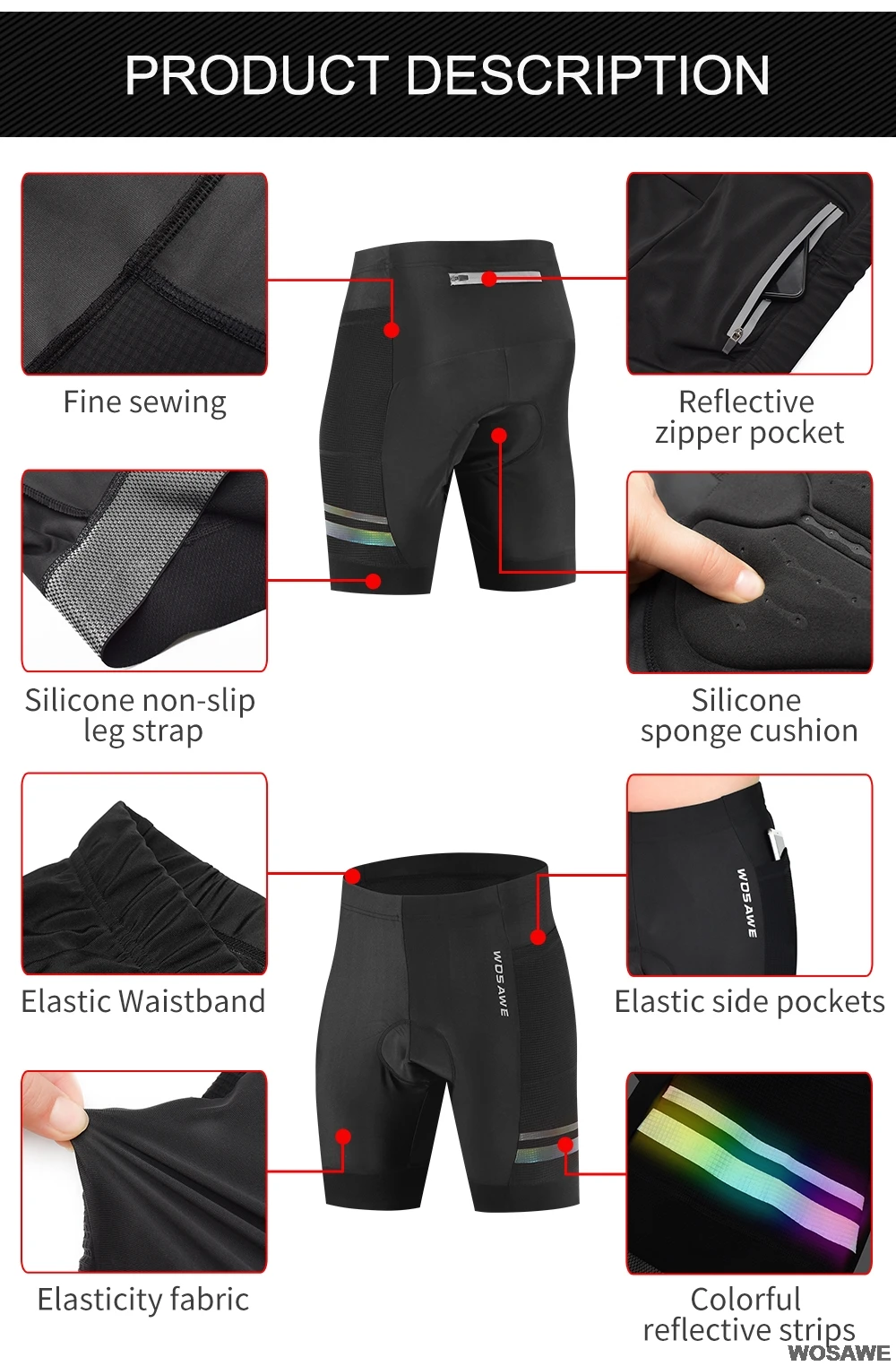 Мужские велосипедные шорты WOSAWE, дышащие эластичные шорты с силиконовой подушкой