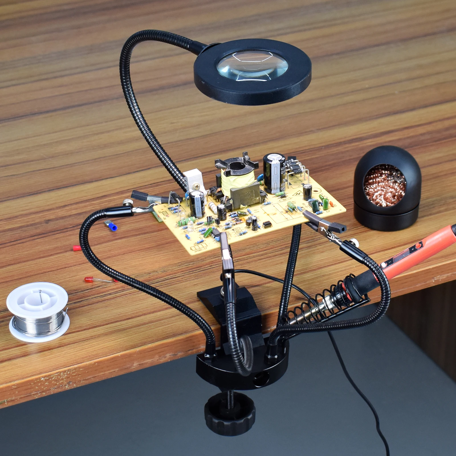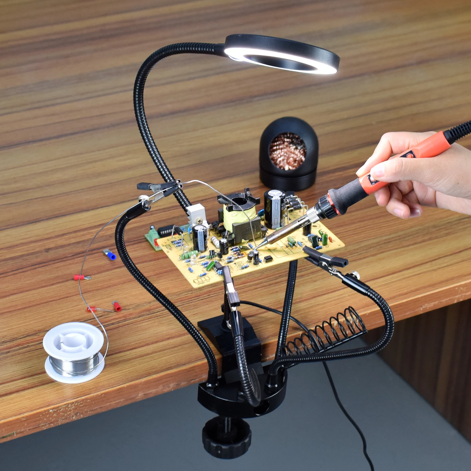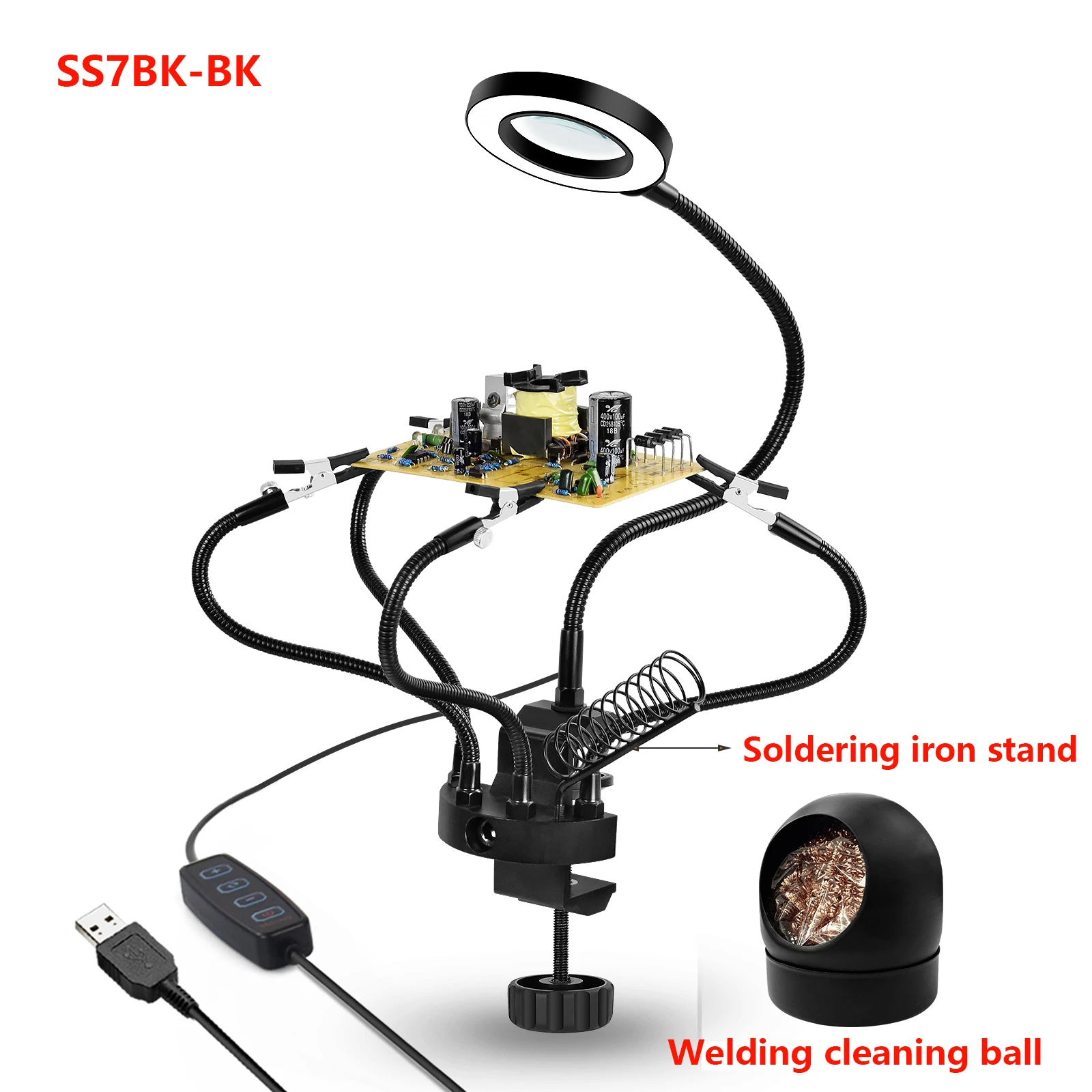 Настольный зажим NEWACALOX, 3-кратная лупа, USB-лампа, паяльная станция, подставка для паяльника, шарик для очистки, инструмент для ремонта