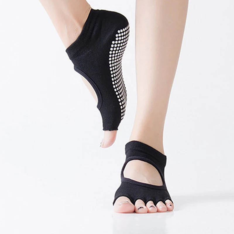 Женские противоскользящие носки с открытой спиной и пятью пальцами для йоги, Пилатес фитнес спортзал носки в горошек, женские спортивные носки