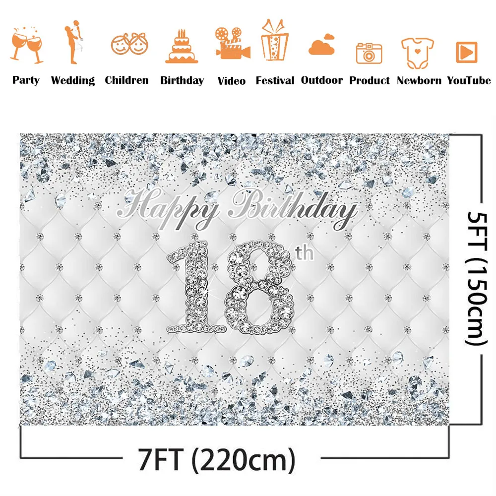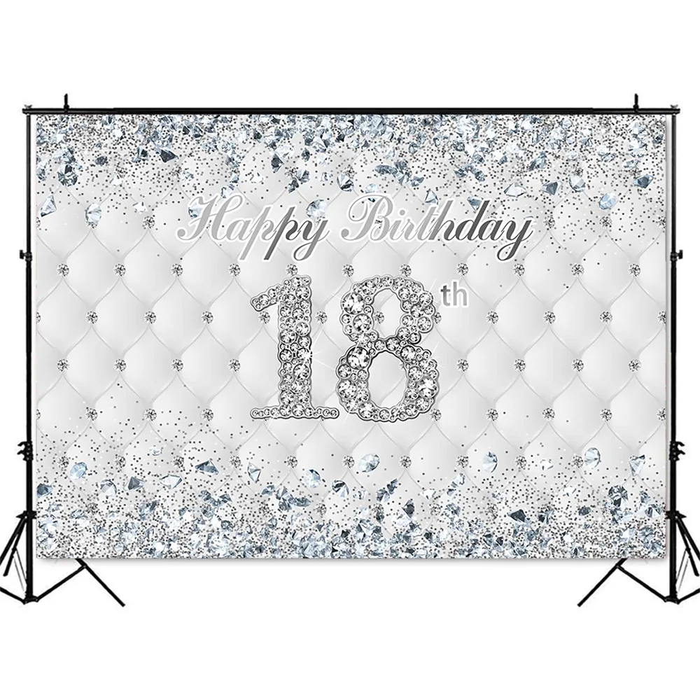 Фон для 18-го дня рождения с изображением белого дощечки для взрослых Бар мицвы день рождения фон для фотостудии серебряные бриллианты фото фон