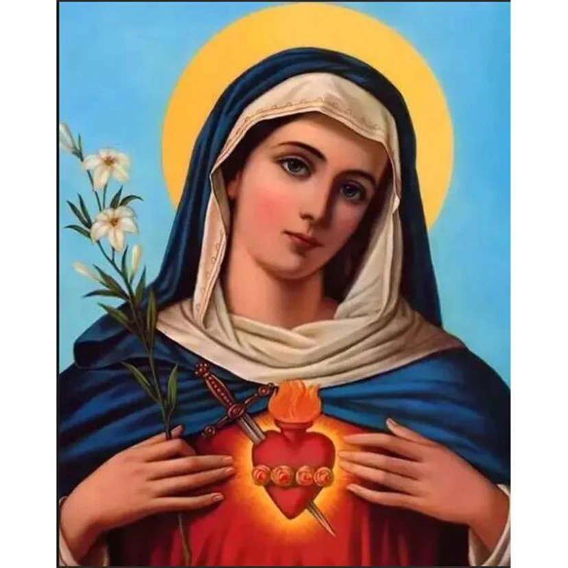 5D DIY алмазная живопись религиозная фигура Девы Марии вышивка камни в форме ромба круглый дрель Наклейка на стену для гостиной Декор подарок CM14