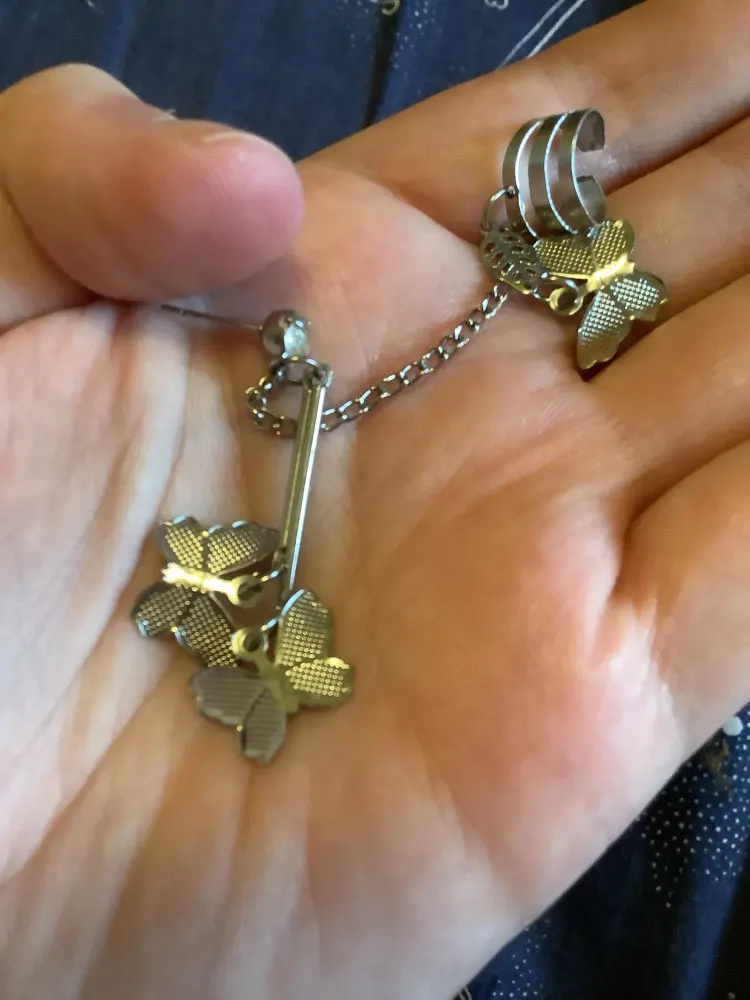 Earring is exactly as shown in photo. It’s very cute, & I get compliments on it every time I wear it. I love it! I recommend this seller & the product. I also got in a couple of weeks to US, very impressed! :)