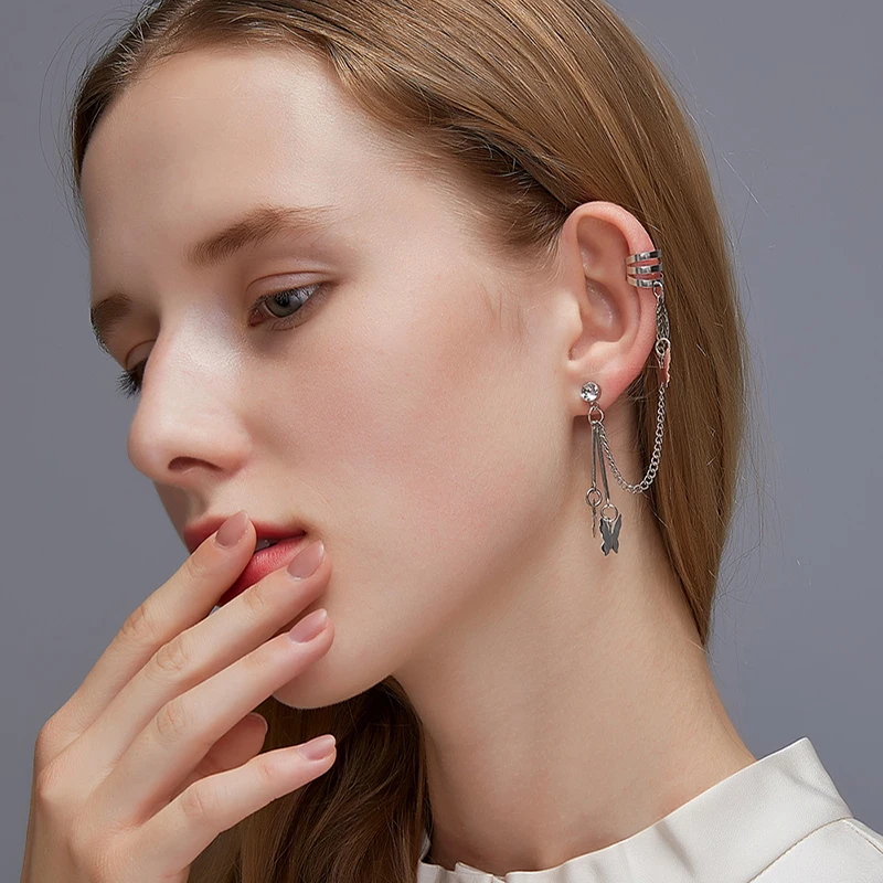 Клипсы-бабочки женские, двойные, из нержавеющей стали 2021, серьги-Крючки для ушей