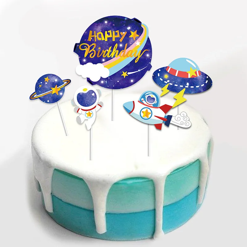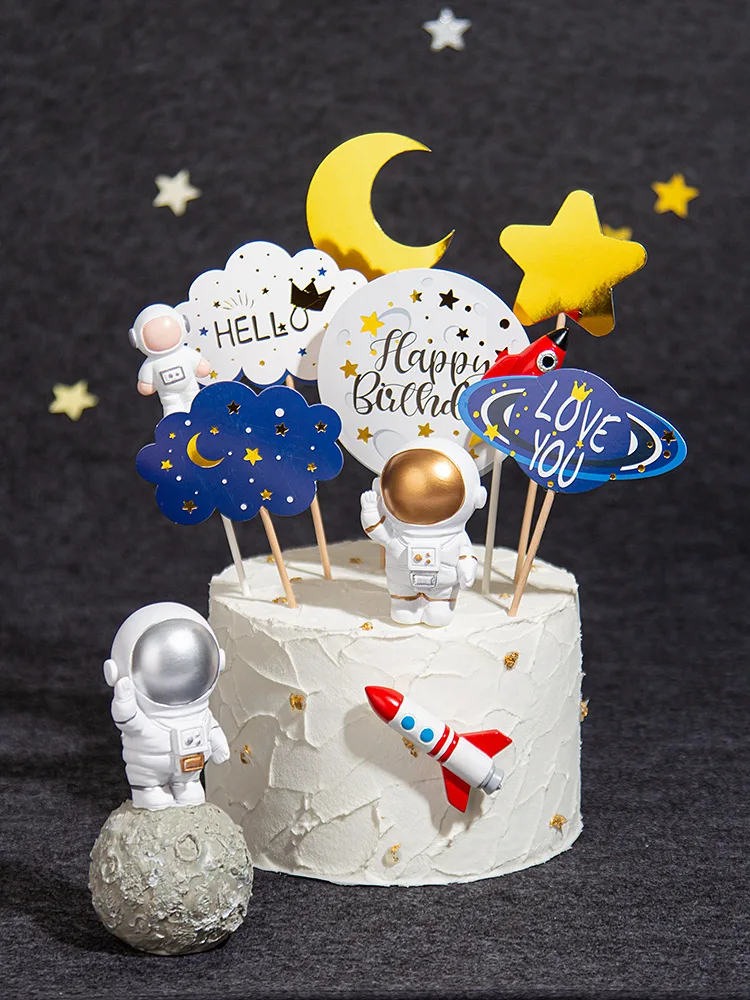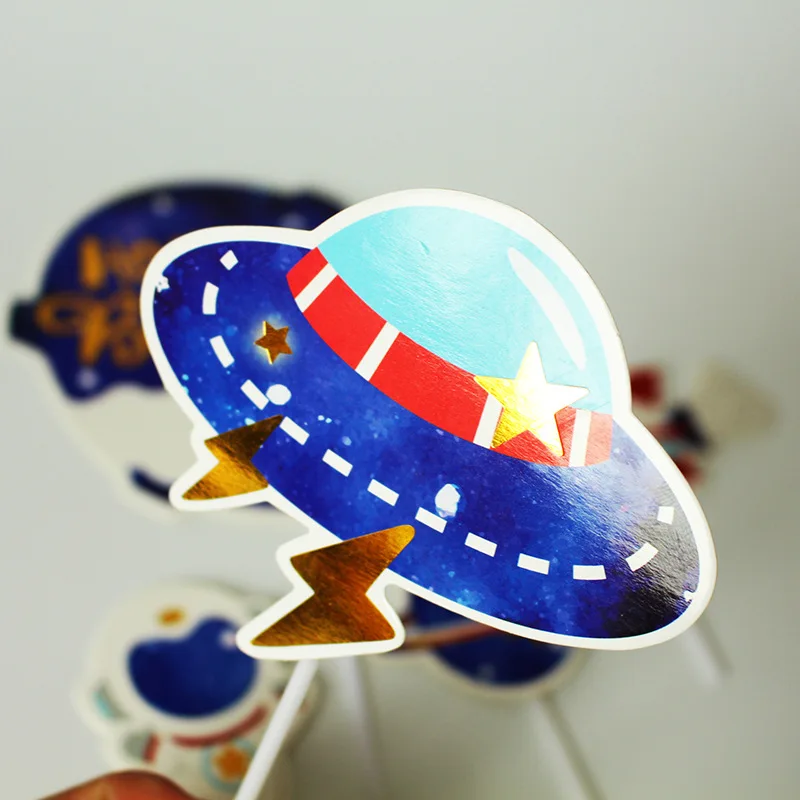 Украшение для торта, космонавт, звезда, НЛО, планета, для дня рождения, свадьбы, космический корабль, декор кекса