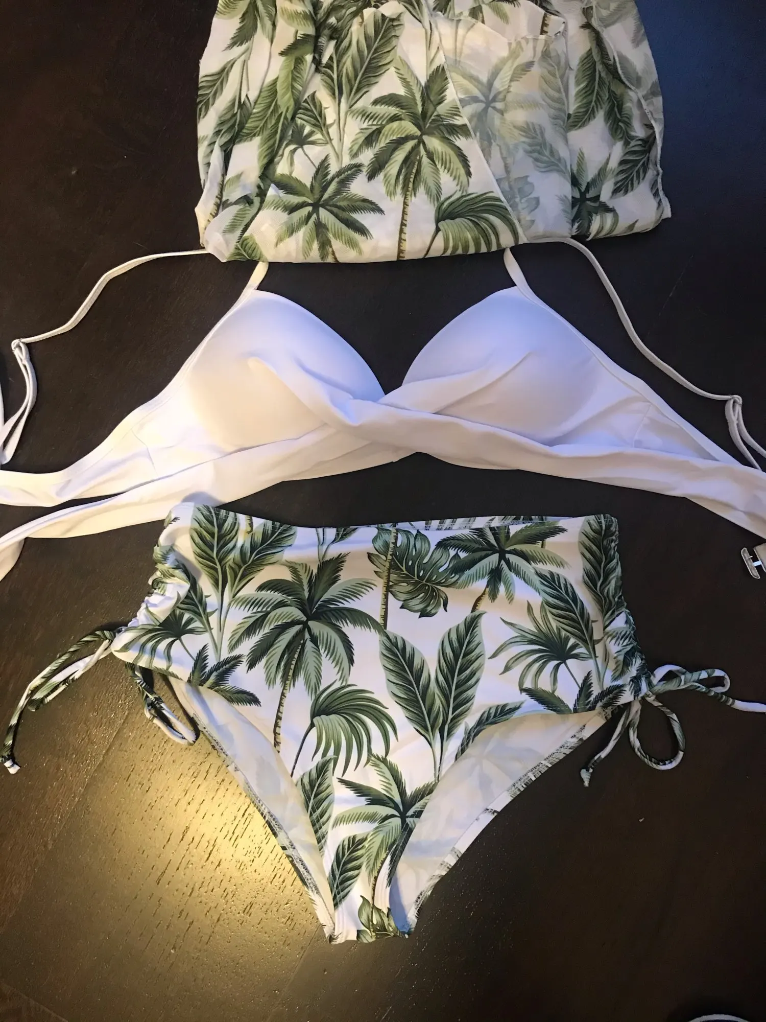 Красивое бикини, чувствует себя прекрасно, а цвета очень веселые, рубашка для игры идеальна. Не нужно разговаривать с продавцом. Это пришло скоро