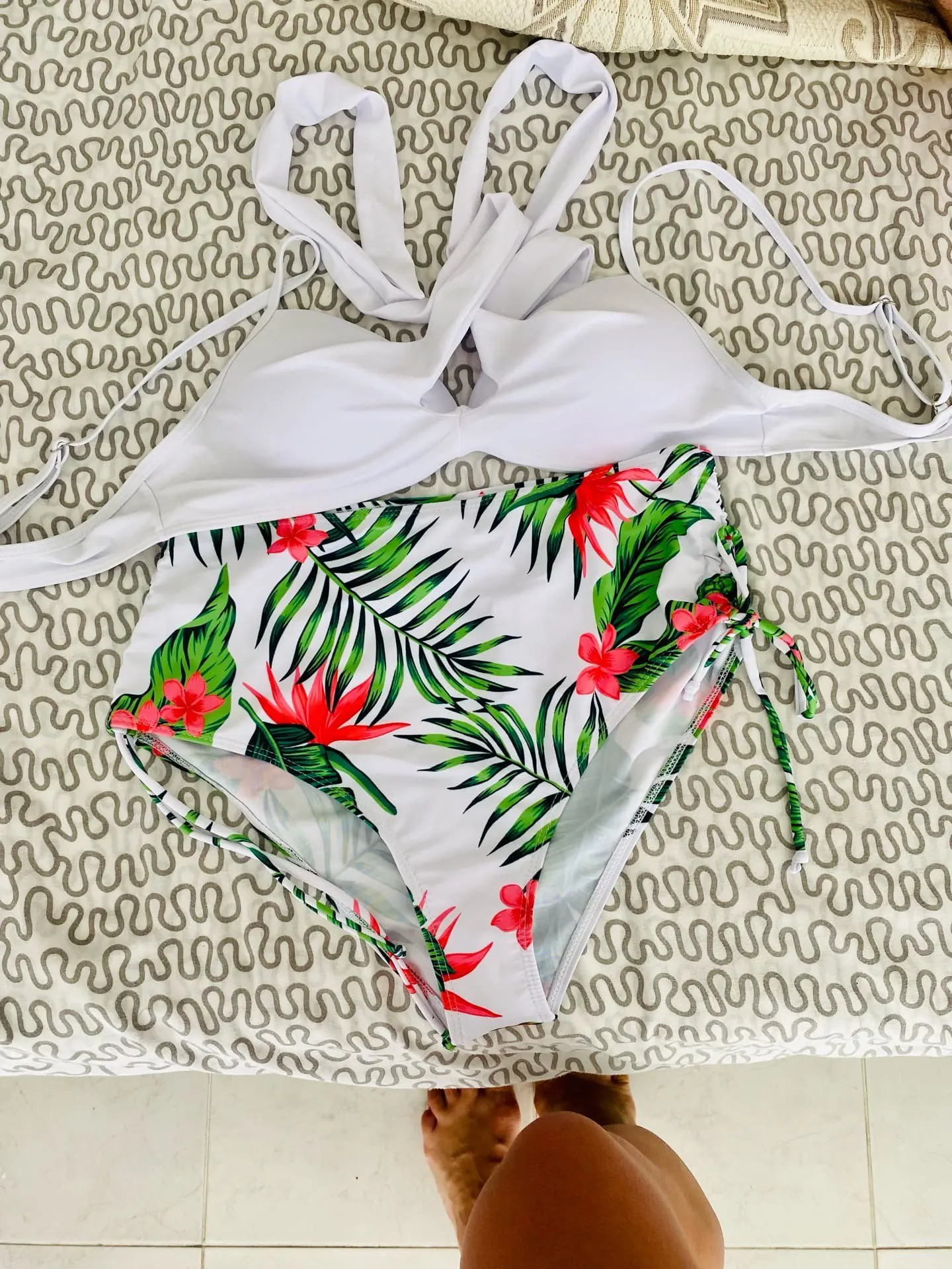 Купальник-бикини женский, с цветочным принтом, с высокой талией