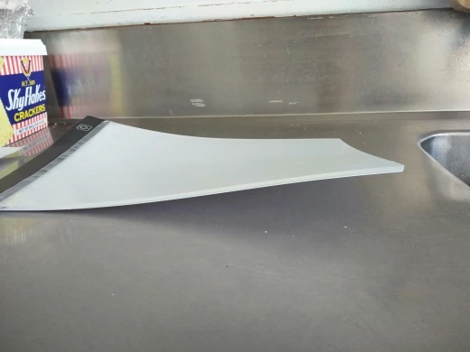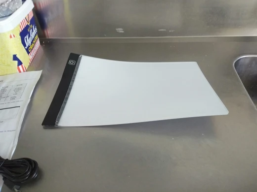 Лайтпад прибыл всего 3 месяца, когда я его получил, все согнуто и не пригодно для использования! Как показано на фотографиях. Когда он включен, свет работает только с одной стороны, другая сторона остается очень тусклой.