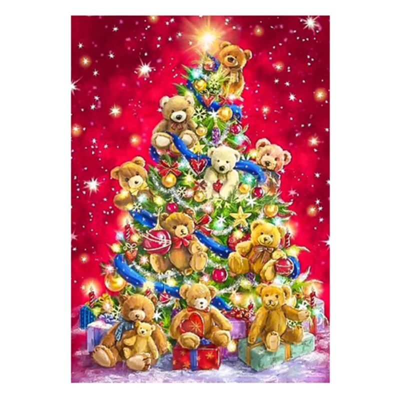 Камни в форме ромбакруглый 5D, сделай сам, бриллиантовый рисунок Рождество дерево с вышитым медведем узор Смолы Набор для вышивания крестиком Мозаика Декор подарки