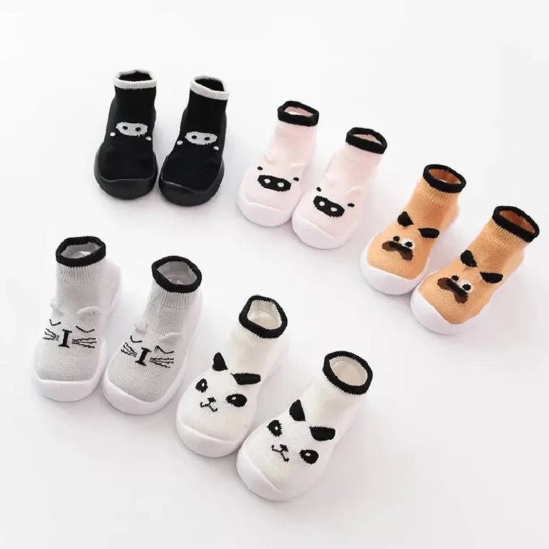 Детские носки с резиновой подошвой, носки с героями мультфильмов для малышей обувь для малышей и малышек, начинающих ходить, детских шагов анти-скольжения кожаные детские носки для пола для маленьких шлёпанцы для женщин