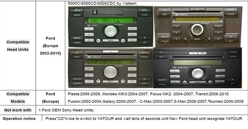 Это адаптер AUX in для Ford 5000 CD, 6000 CD, 6006 CDC, а также CDXF214 заводская установка CD / radio.
