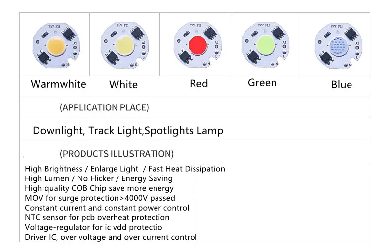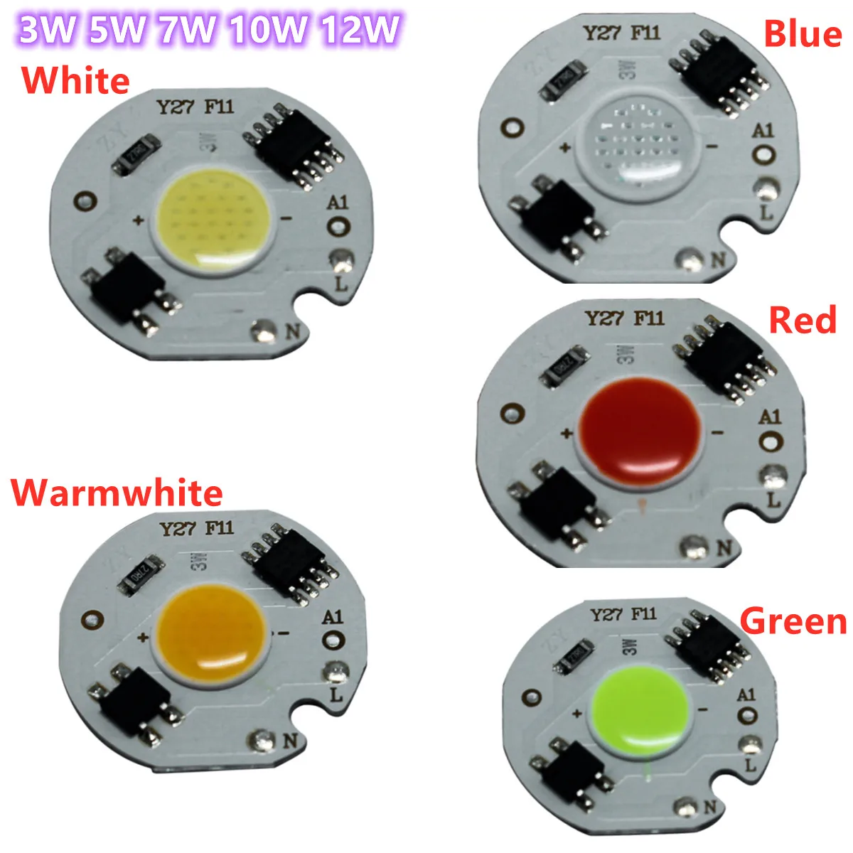 1 шт., 3 Вт, 5 Вт, 7 Вт, 10 Вт, 12 Вт, светодиодный чип COB, 220 В переменного токав, умная плата управления, лампочка драйвера, красный, зеленый, синий источник света для сделай сам, точечный светильник