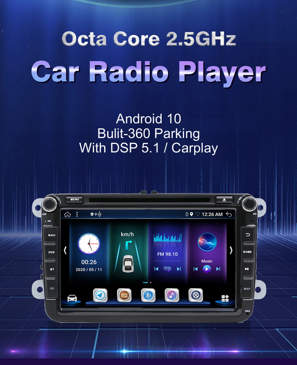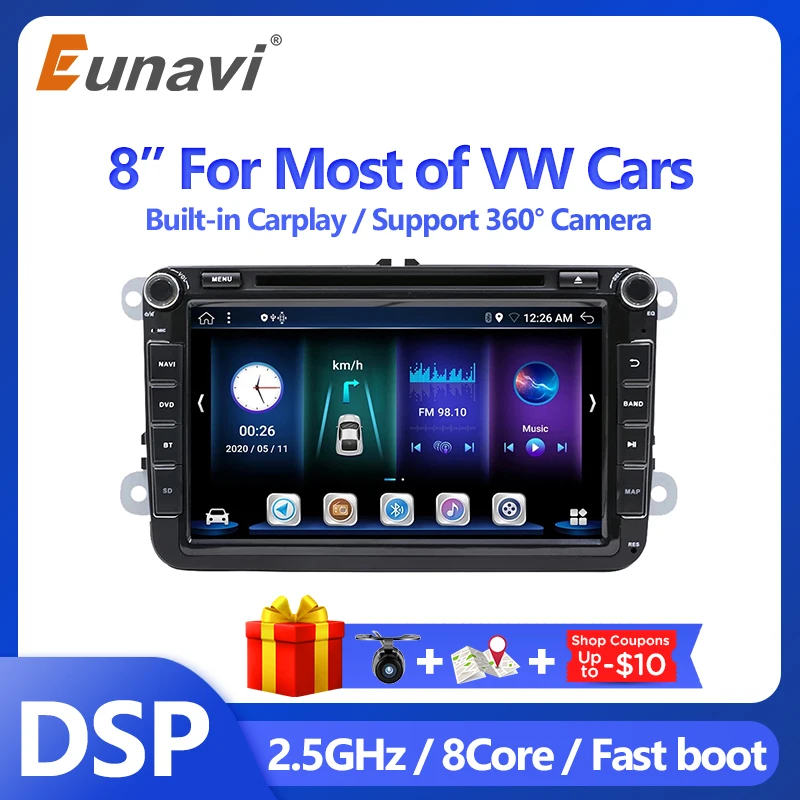 Eunavi 8 ''2 Din Android 10 Автомобильный dvd Радио для VW Volkswagen Polo Jetta passat b6 b7 cc fabia Touran golf 6 Tiguan rns510 GPS BT
